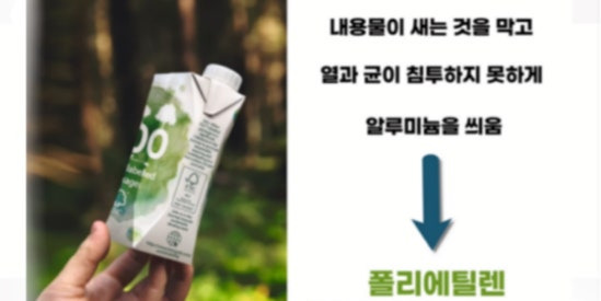 멸균팩 - 알루미늄을 얇게 씌운 뒤 폴리에틸렌으로 코팅해 내구성을 높여 안의 내용물이 새어 나오거나 젖지 않게 되는 것입니다