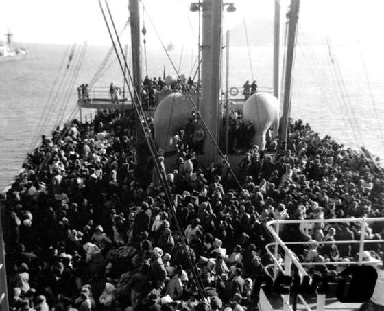 부산항에 도착해서도 피난민을 받을 수 없이 꽉 차서
