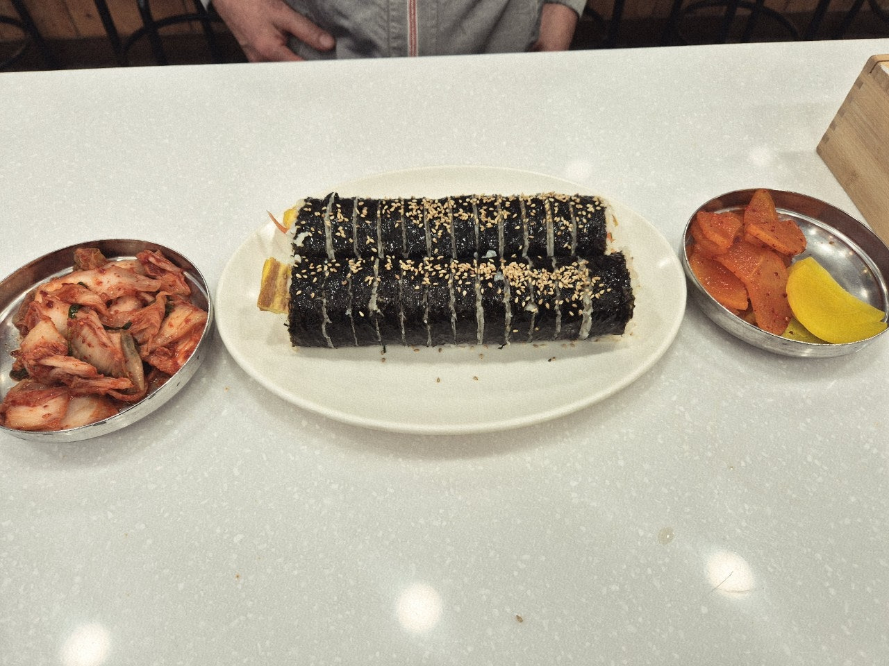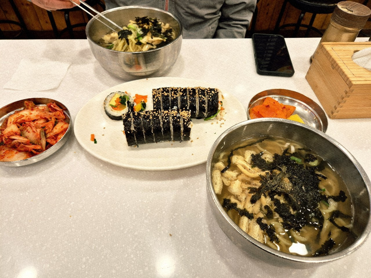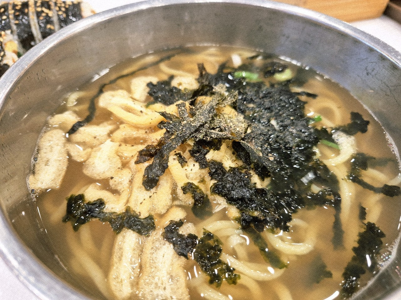 뜨끈한 우동에 김밥 참 잘 먹었네요
