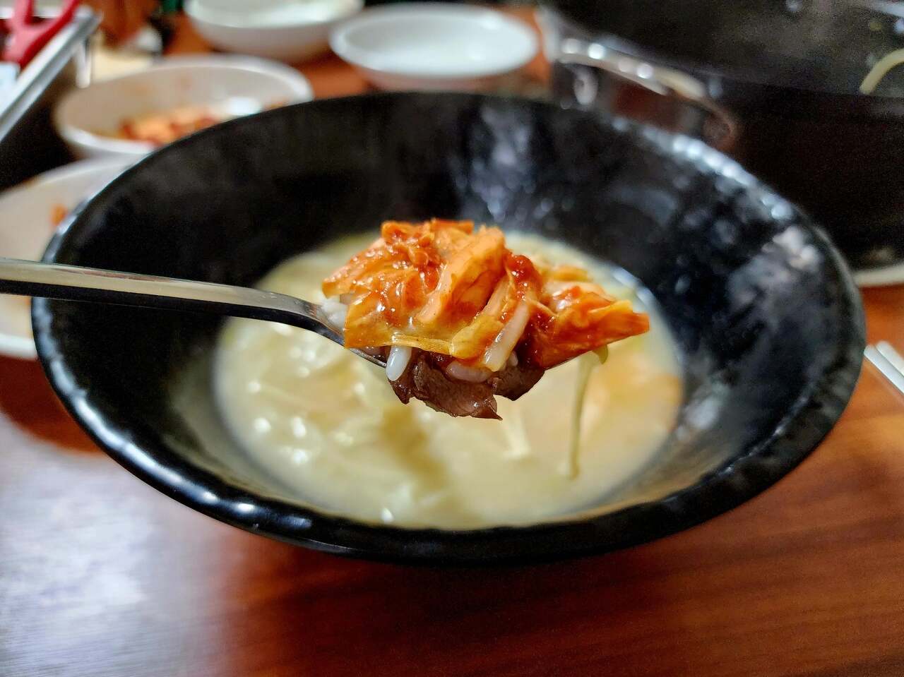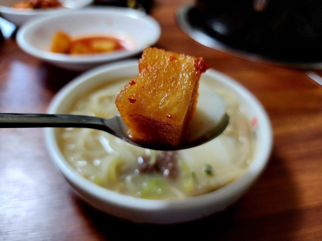 칼칼한 겉절이김치와 아주 잘 맞는 사골육수ᆢ