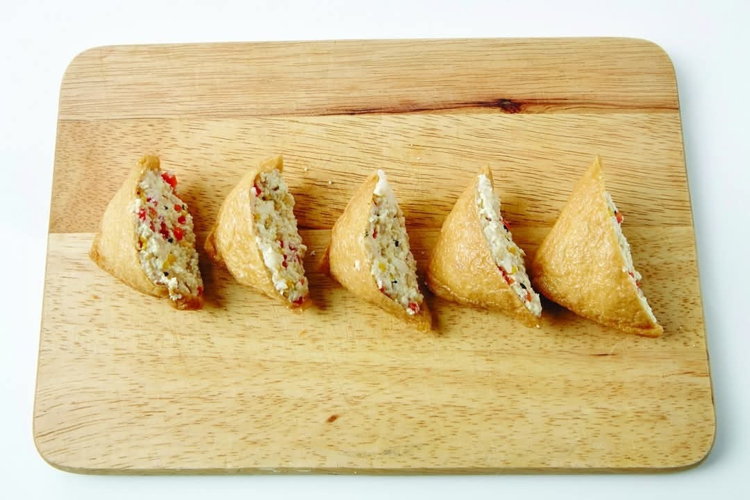5. 양념한 재료를 유부에 채워 넣어 마무리.