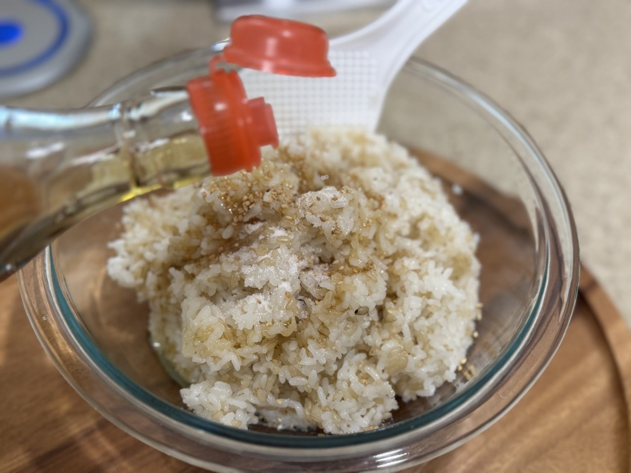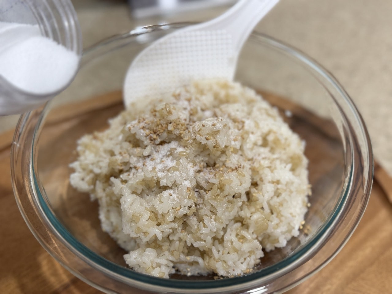 소금 0.5t 가량과 깨소금을 넣어줘요.