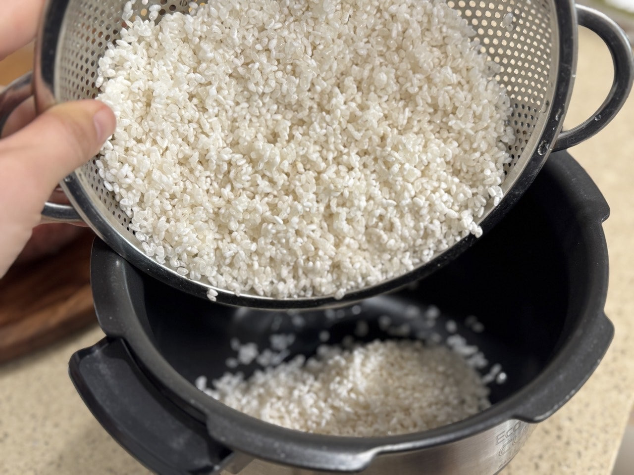 세척해 물기를 뺀 뒤 내솥에 담아줍니다.