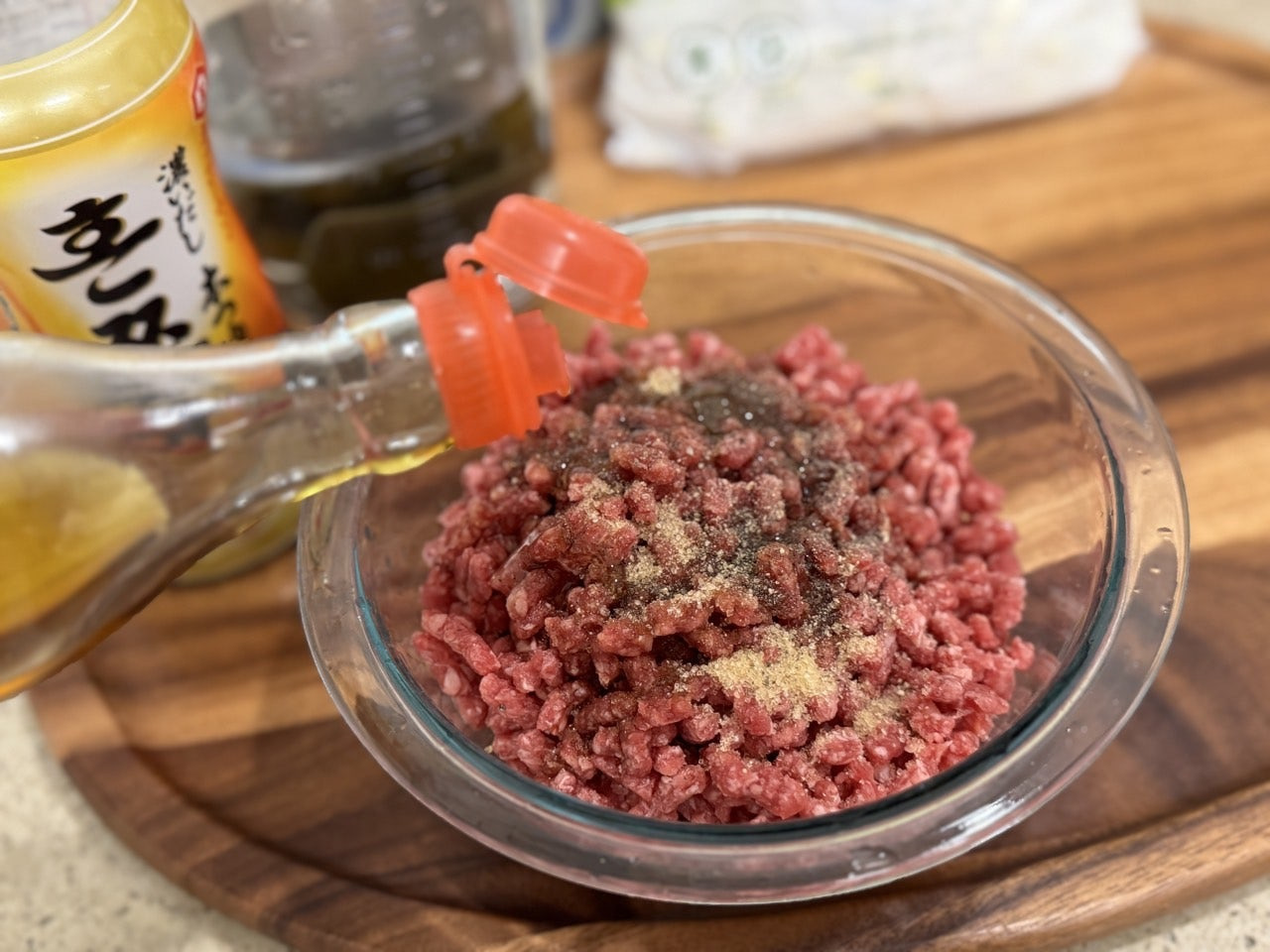 간장, 설탕, 후추, 참기름, 들기름, 쯔유간장 2T,