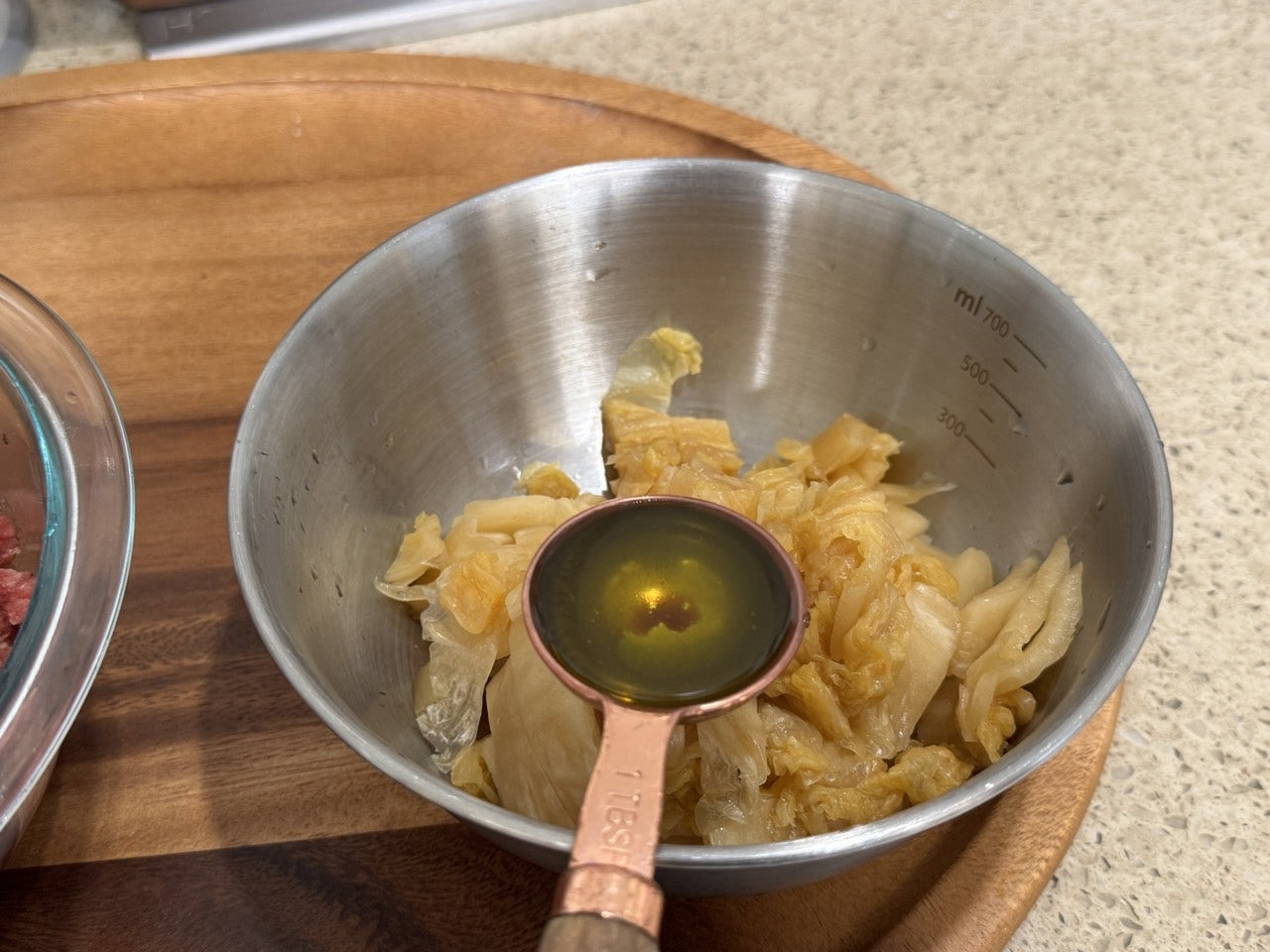 씻은 김치, 소고기 다짐육 요리로