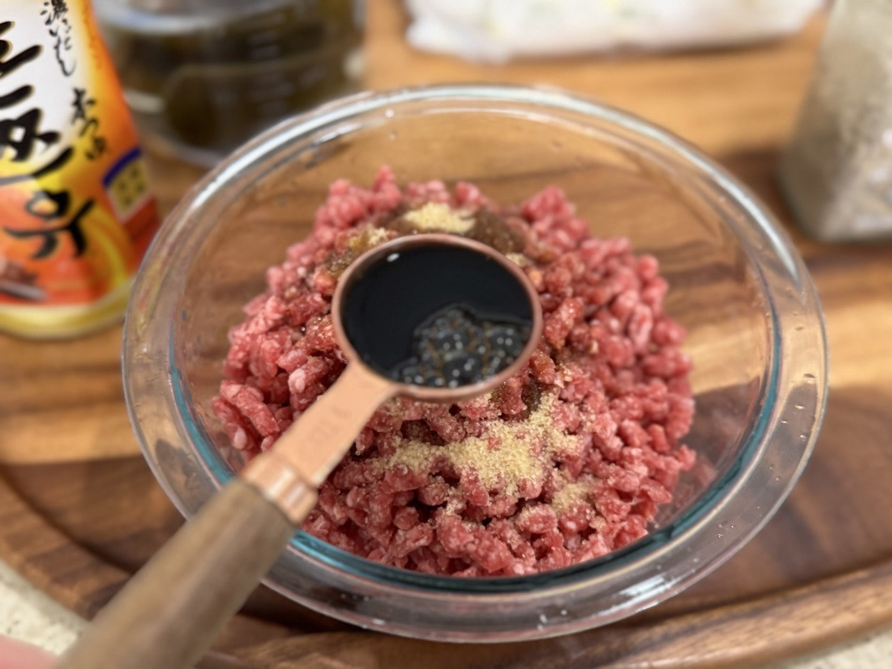 소고기 다짐육 300g에 설탕 1T,