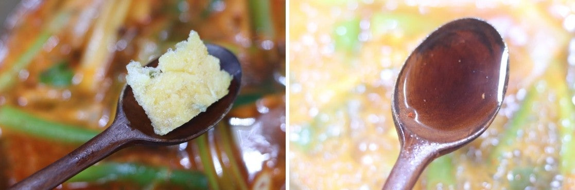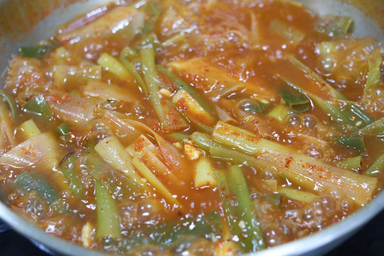 5. 다진 마늘 1T, 홍게액젓(멸치액젓) 1T를 넣고 10분 정도 끓여 줍니다.