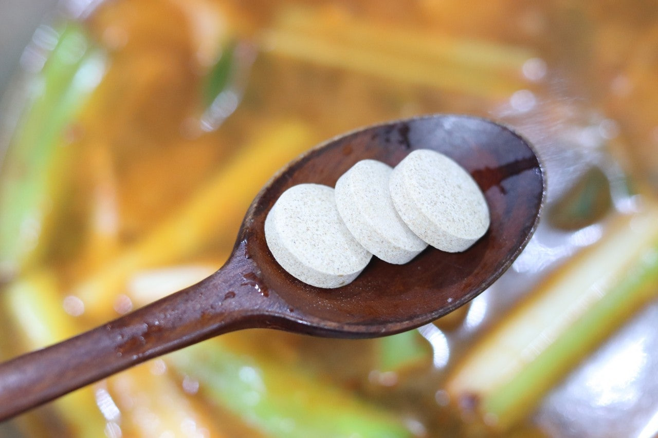 4. 물 1L를 넣고 코인육수 3알을 넣고 끓여 줍니다.