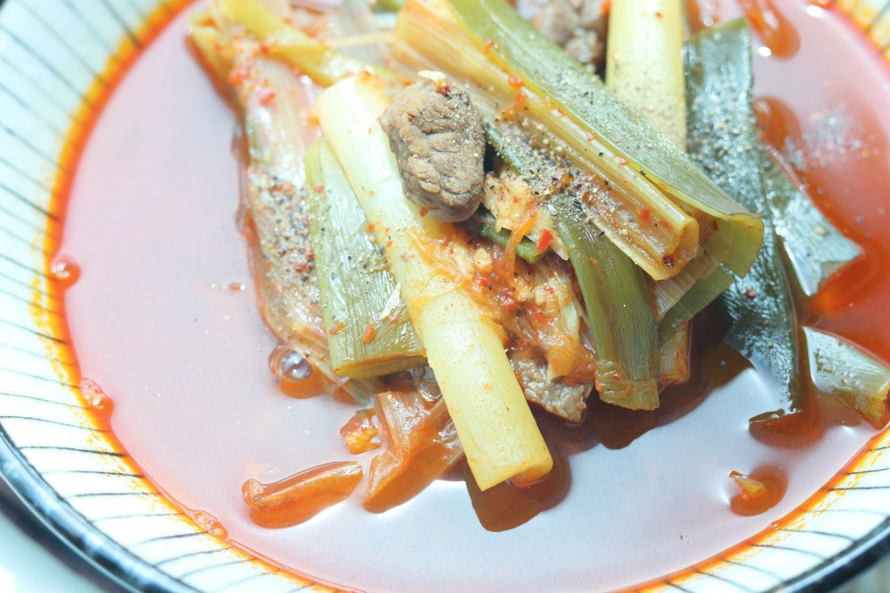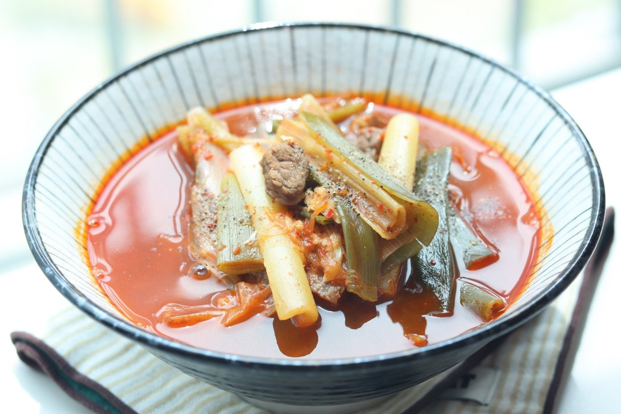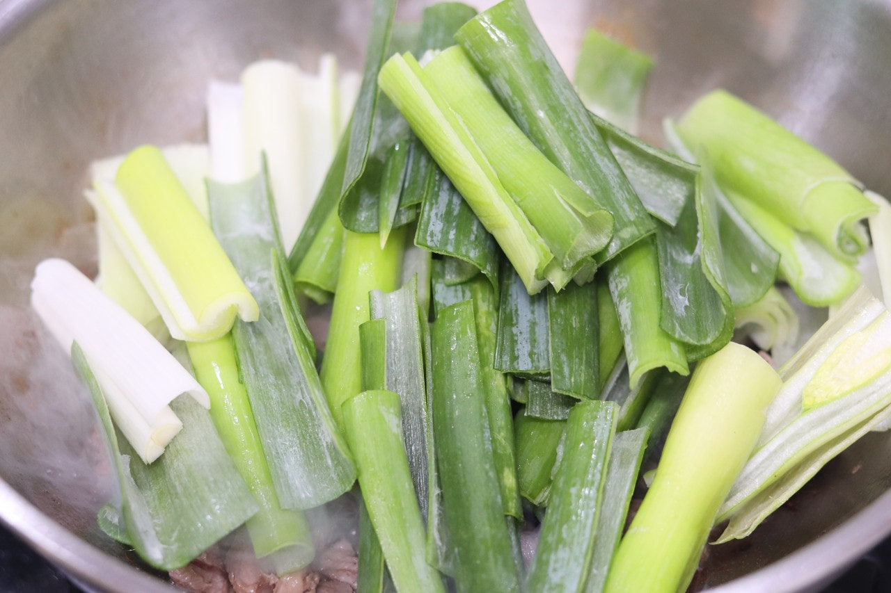 물론 육개장은 고사리, 토란대, 표고버섯 등을 넣어주면 더 맛있겠지만, 집에 재료도 없고 휘리릭 빠르게 만들고 싶을 때는 요렇게 대파만 가득 넣고 만들어 보세요~