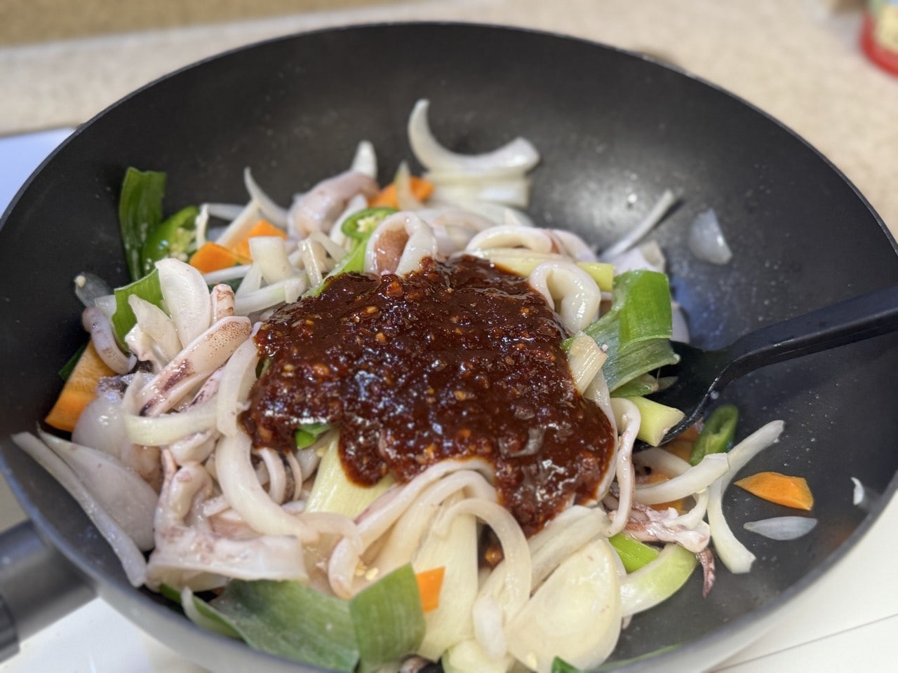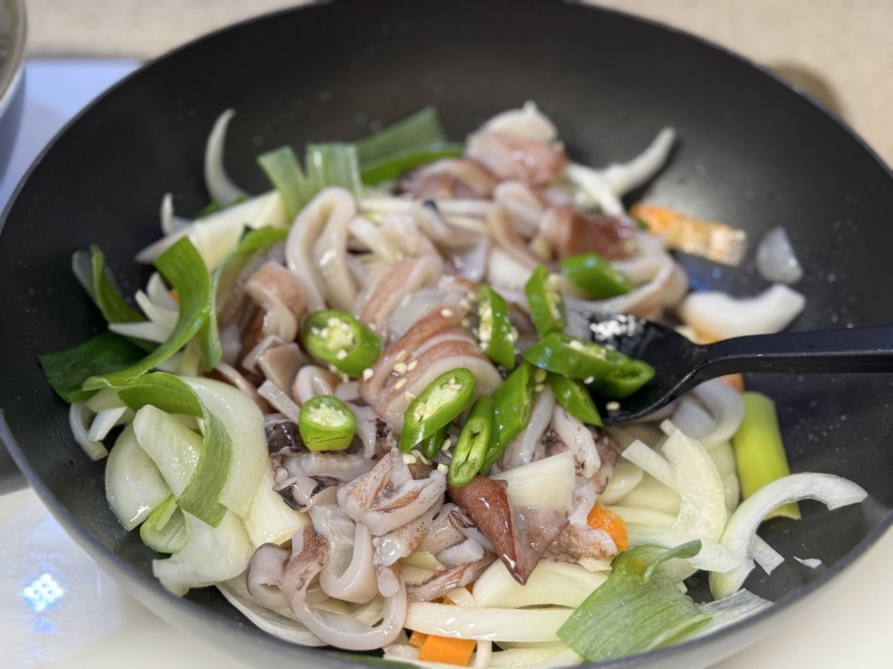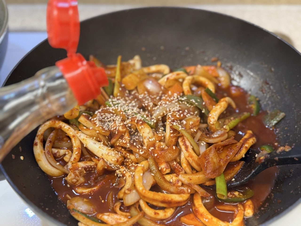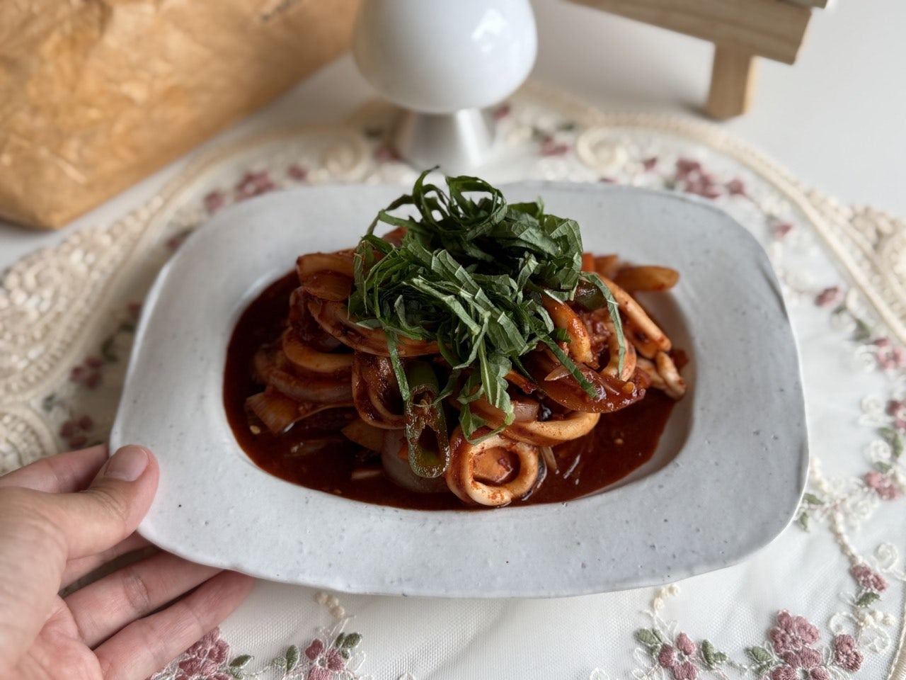 쫄깃한 오징어와 감칠맛 가득한 양념으로