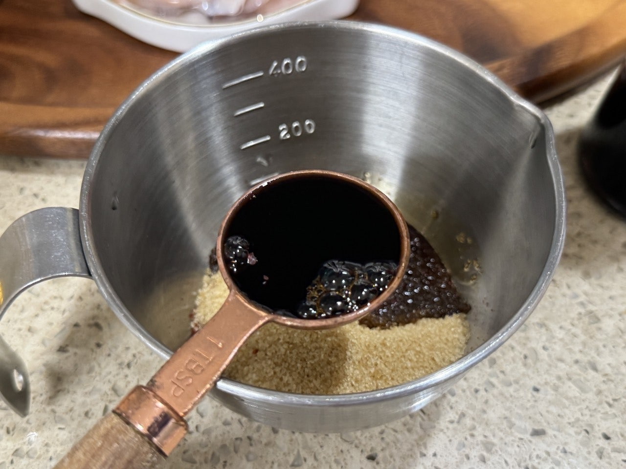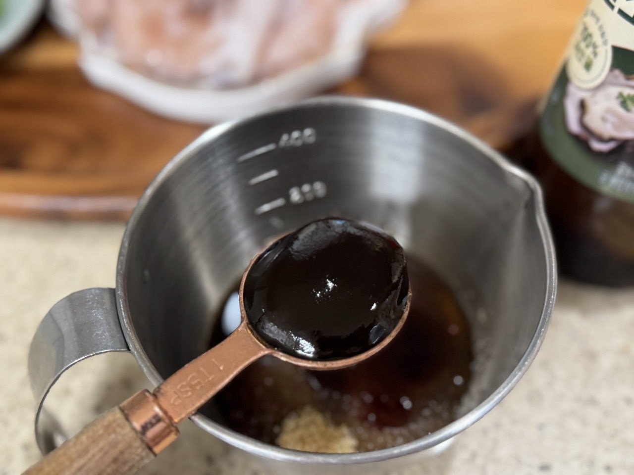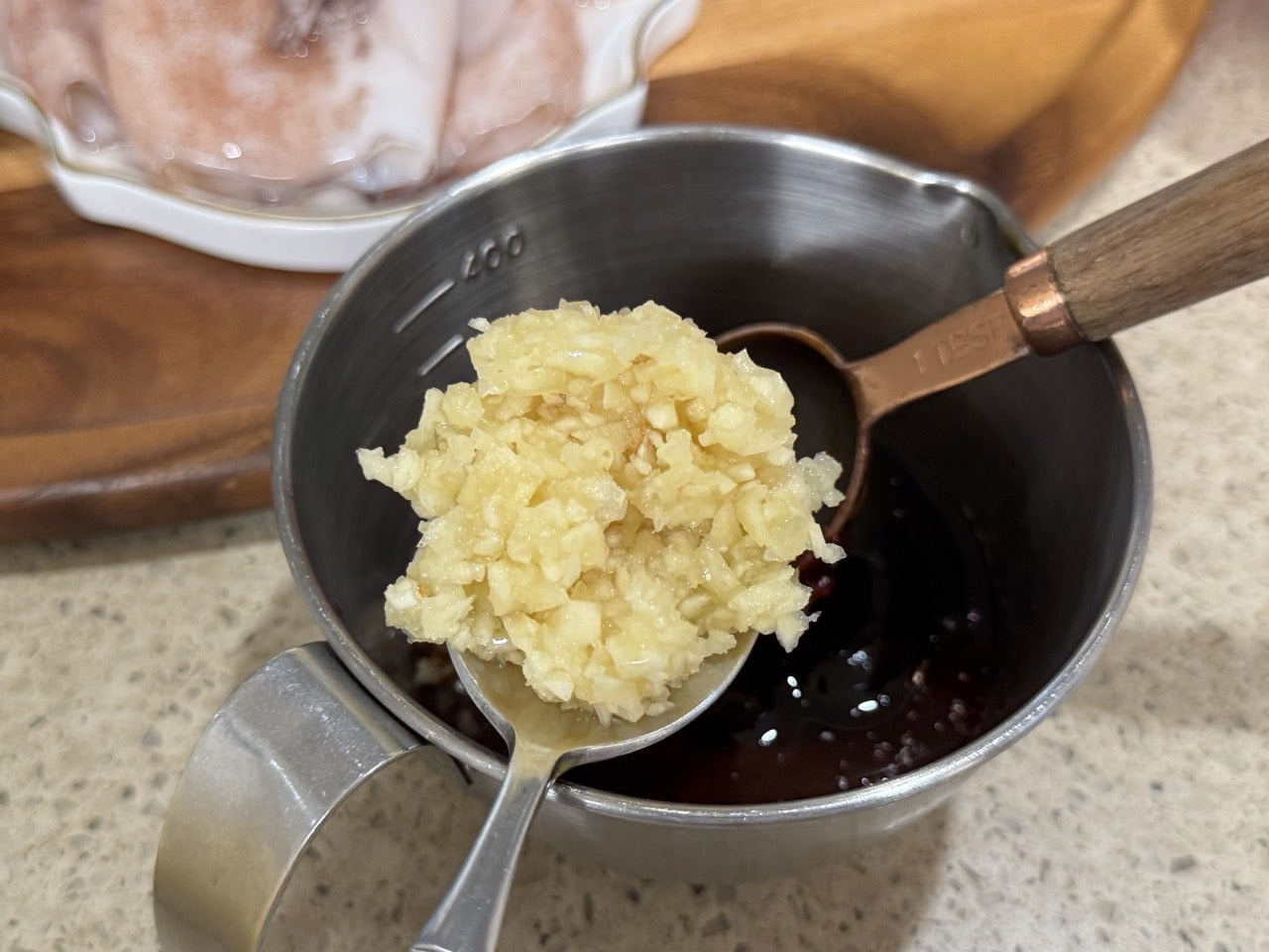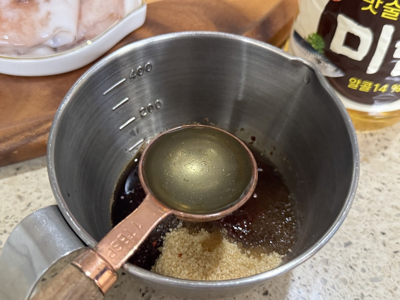 맛술 2T, 설탕 2T, 다진 마늘 2T, 굴 소스 1T.