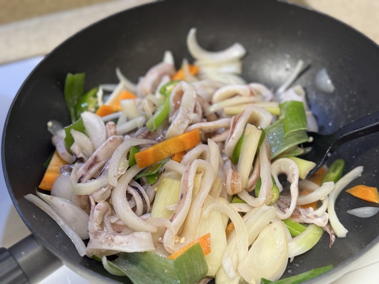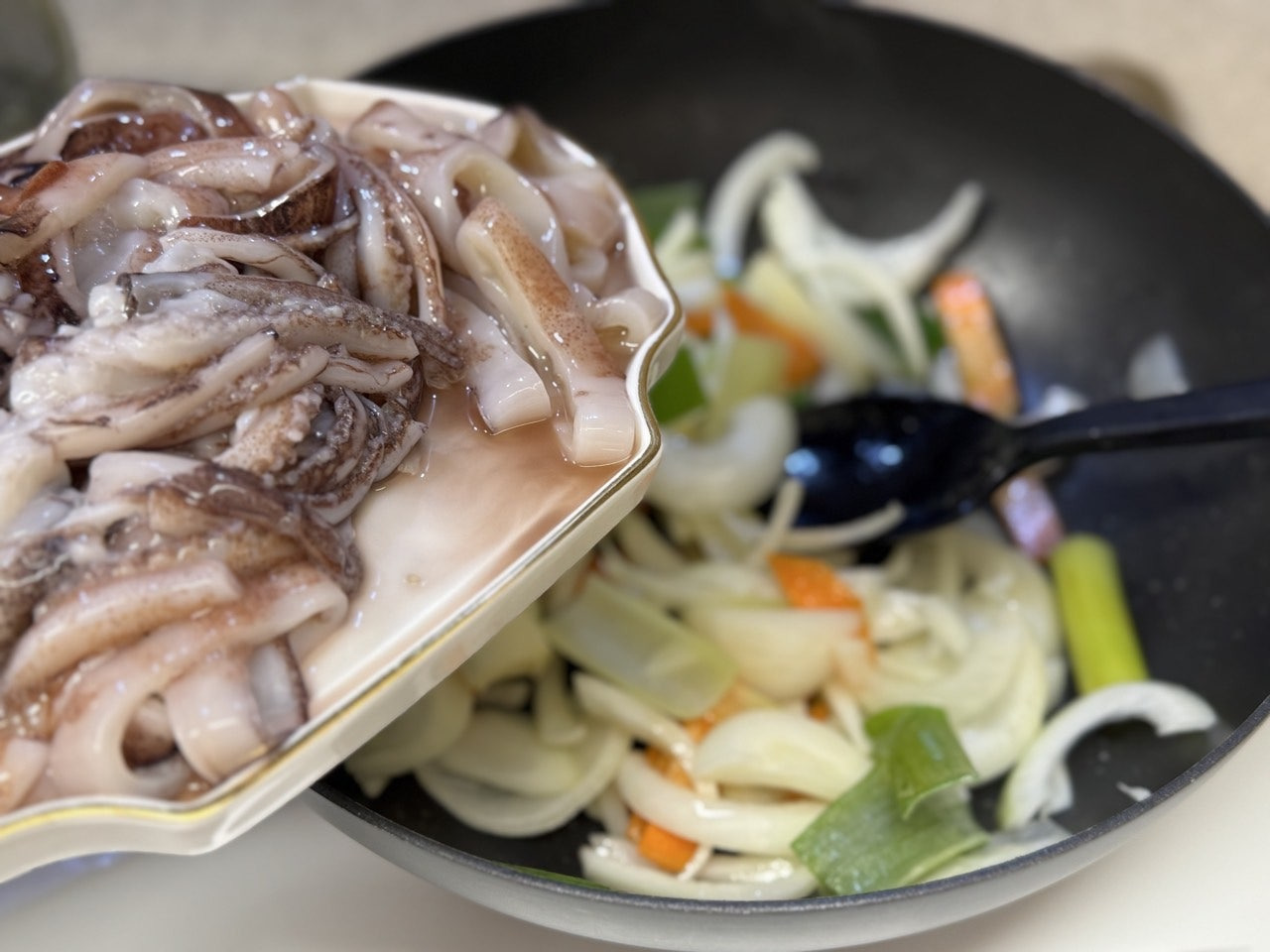 오징어 2~3마리, 양파 1개, 당근 1/3개,