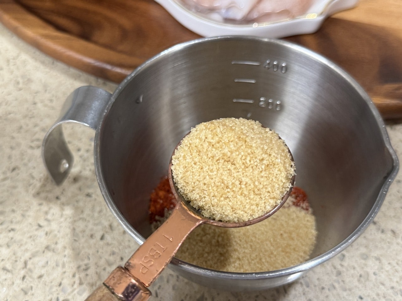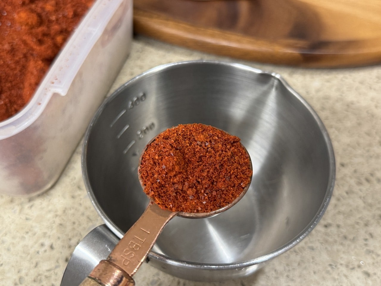 고춧가루 3T, 설탕 2T 넣어주세요.