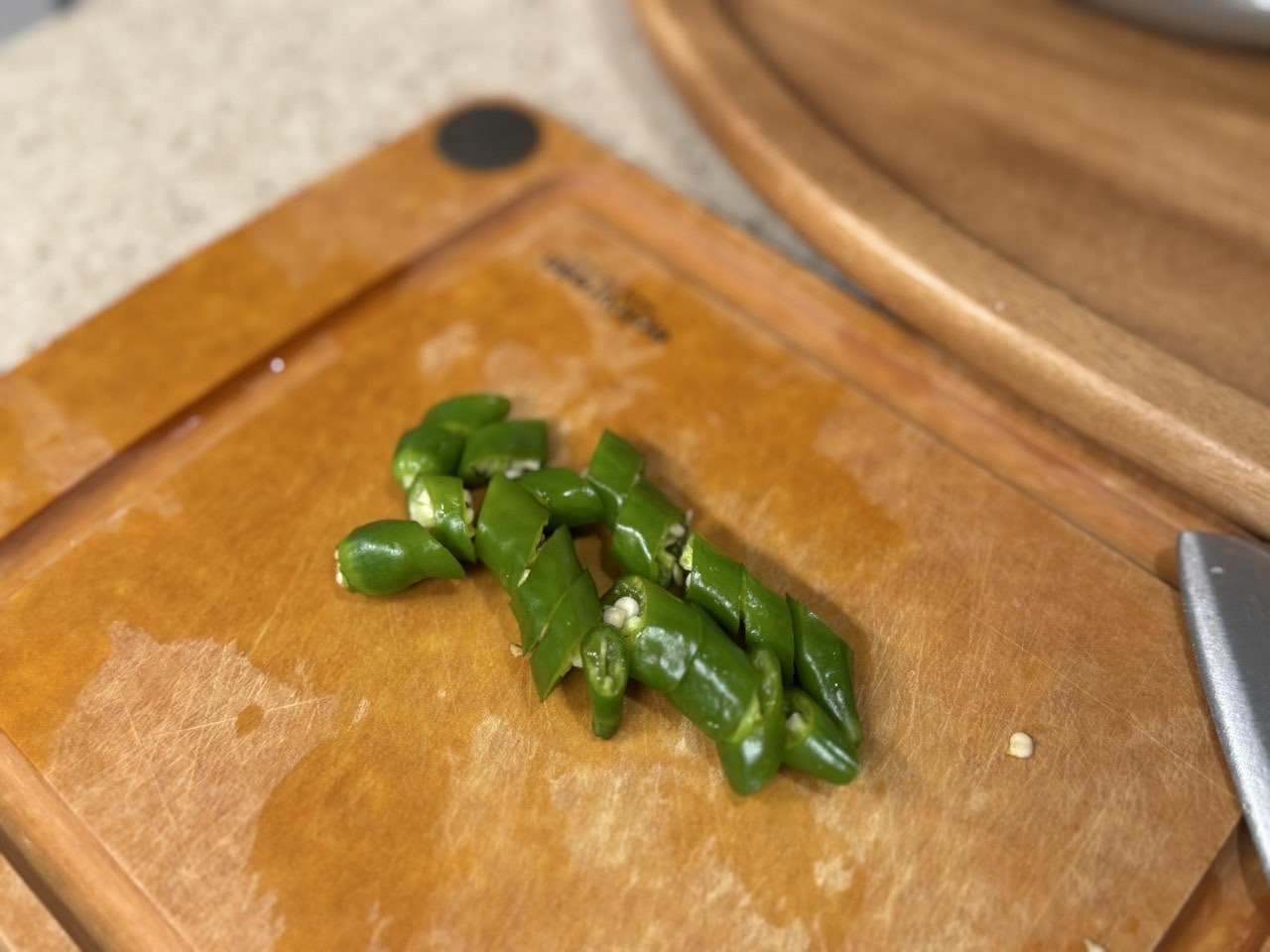 대파와 청양고추도 어슷 썰어 준비해요.