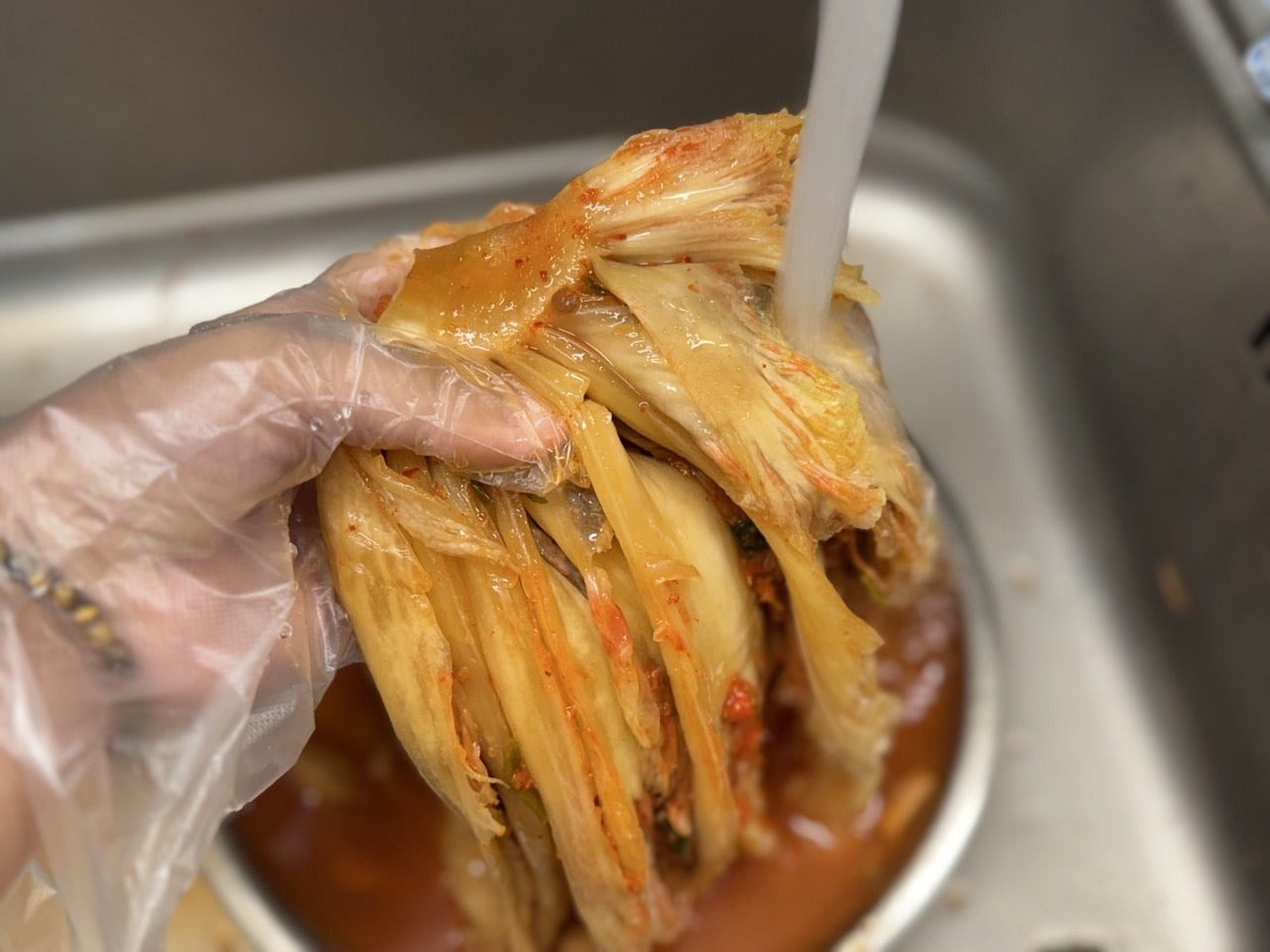 먼저 잘 익은 묵은지를 씻어줄게요.