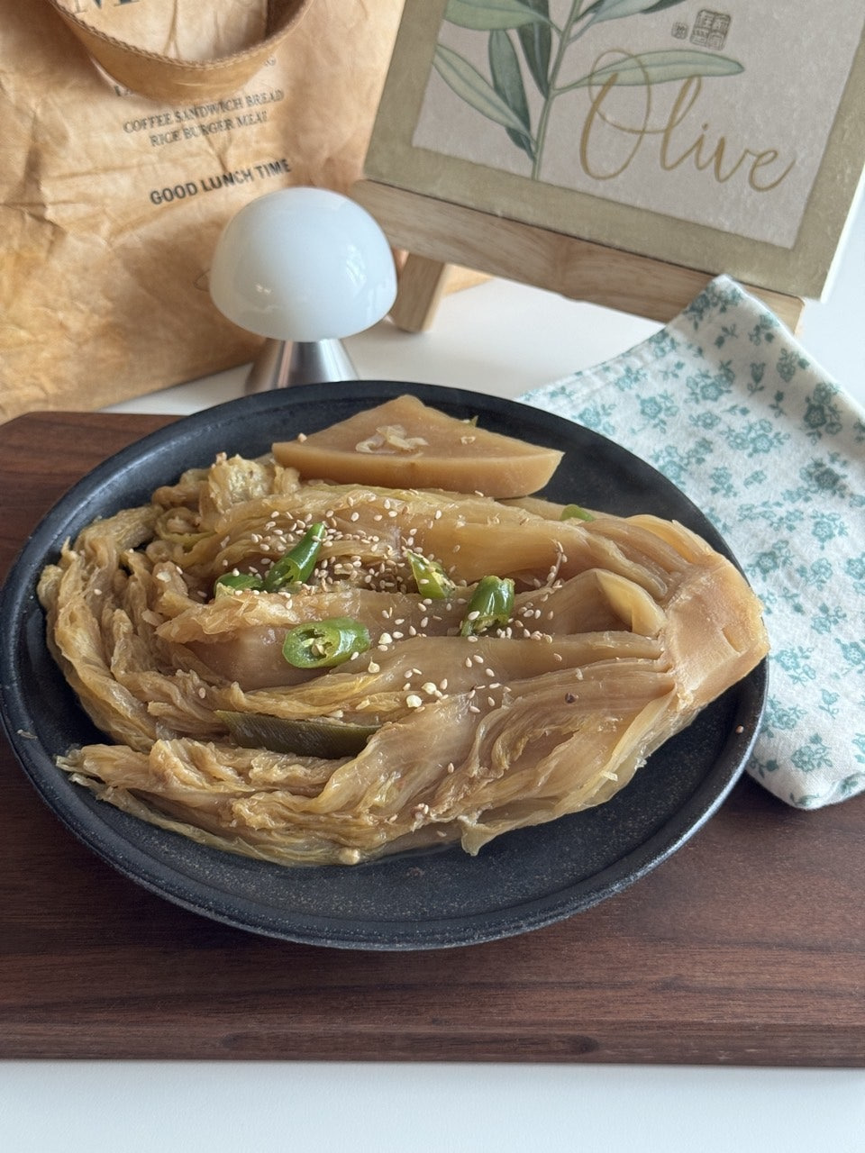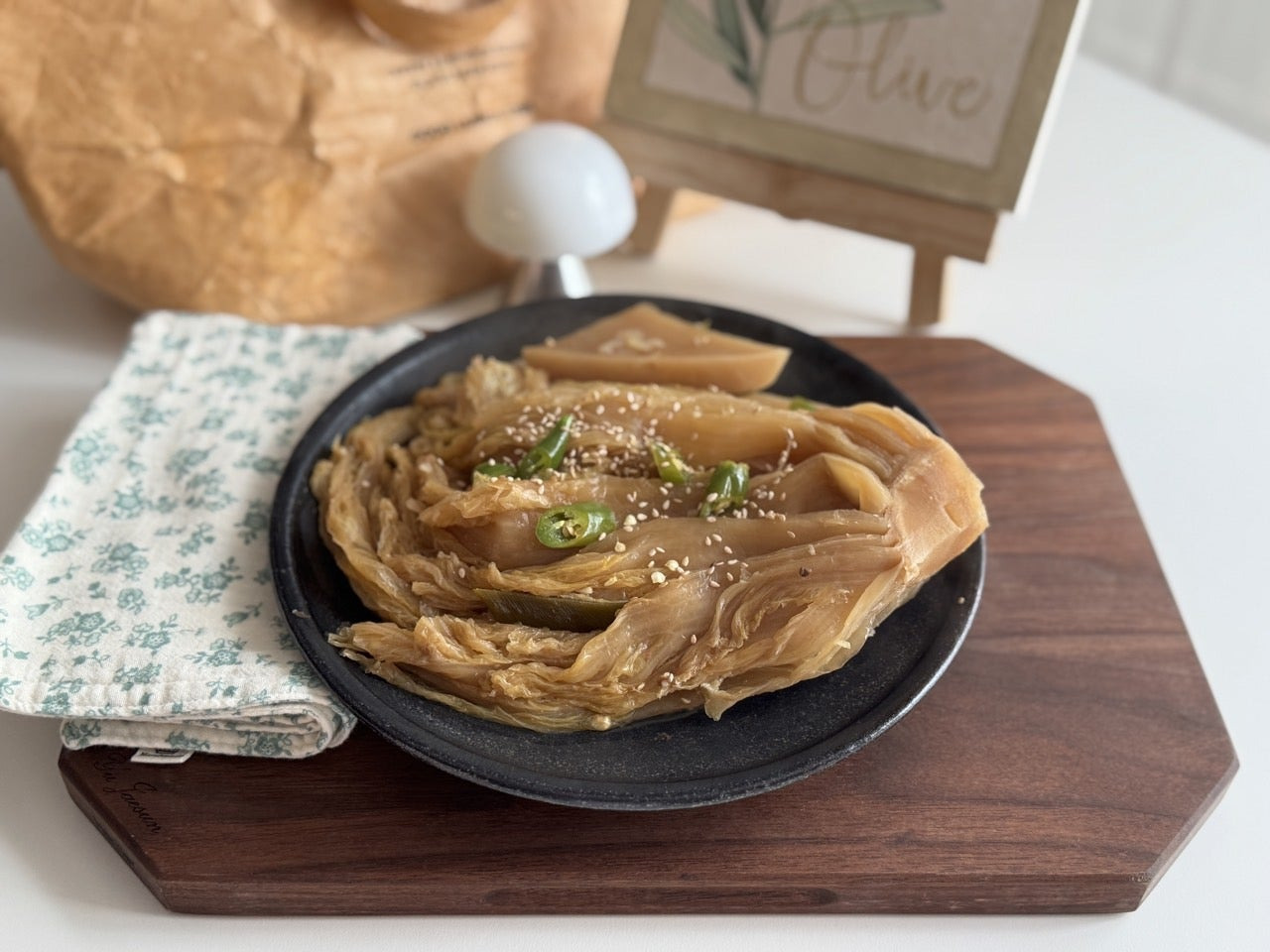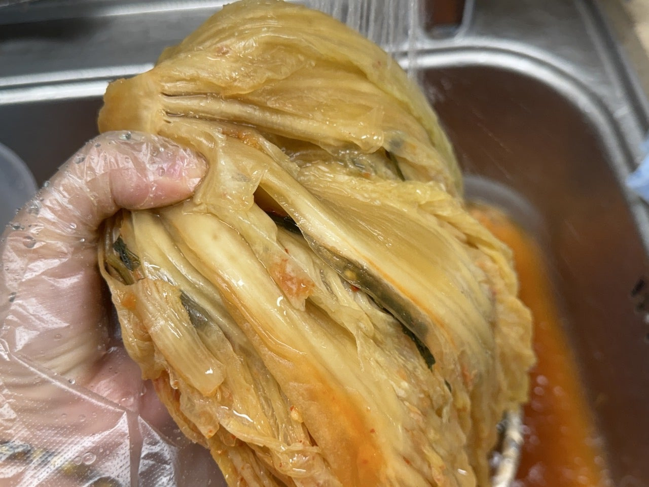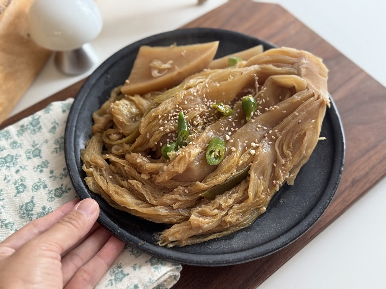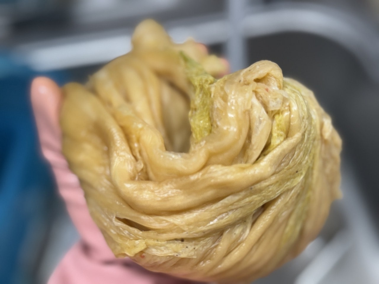 여러 번 헹구어 깨끗하게 씻긴 묵은지는