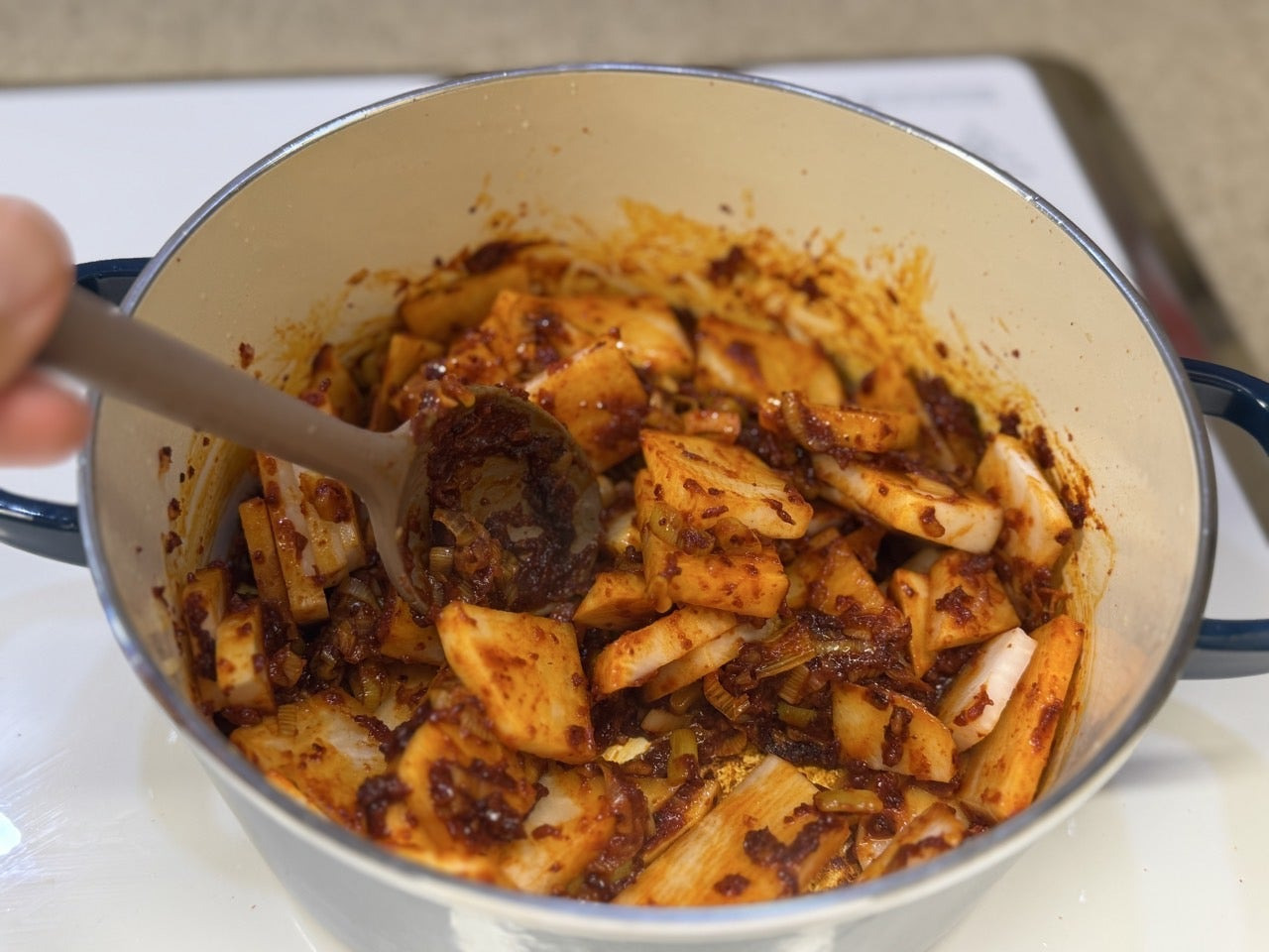 다음으로 고추장 2T 넣고 골고루 볶아주세요.