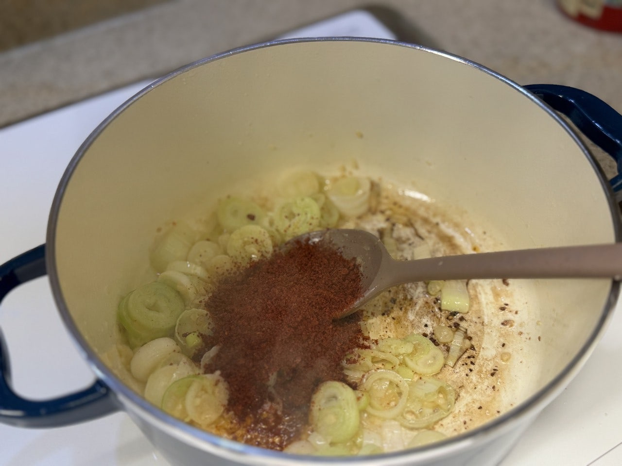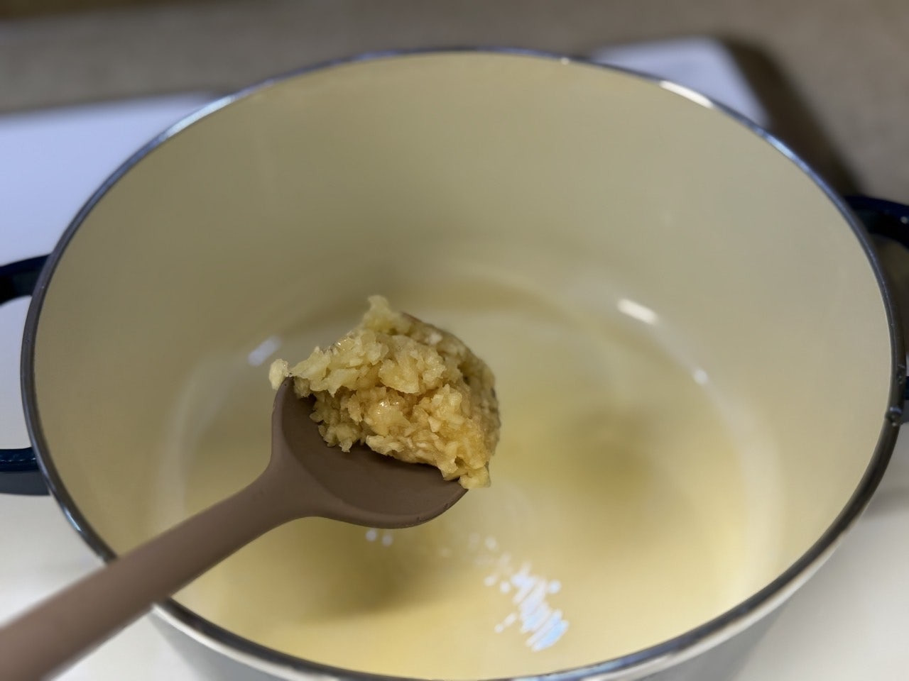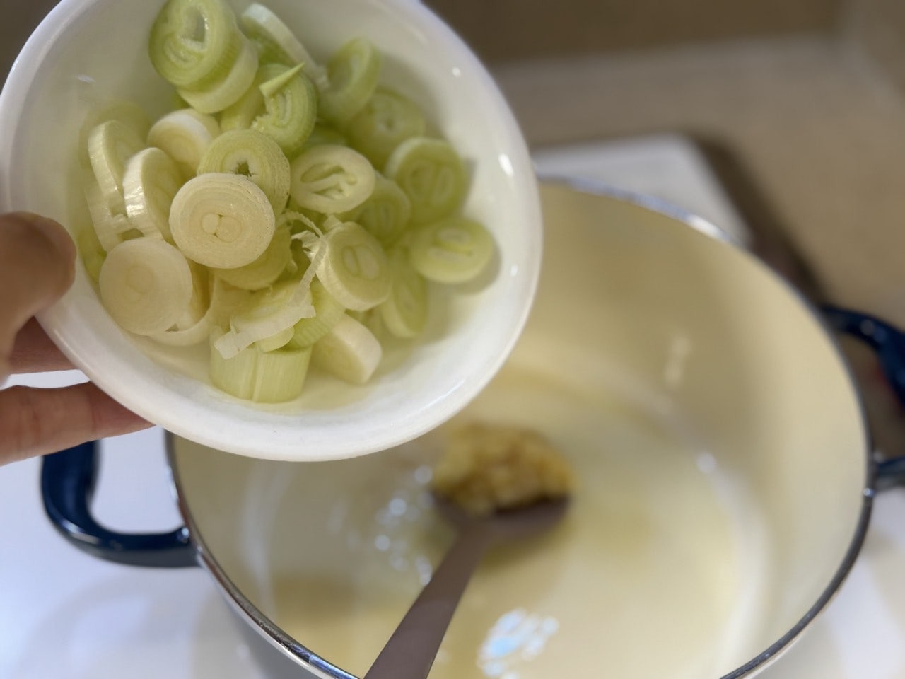 대파 흰 부분과 다진 마늘 1T를 넣고 볶아주세요.