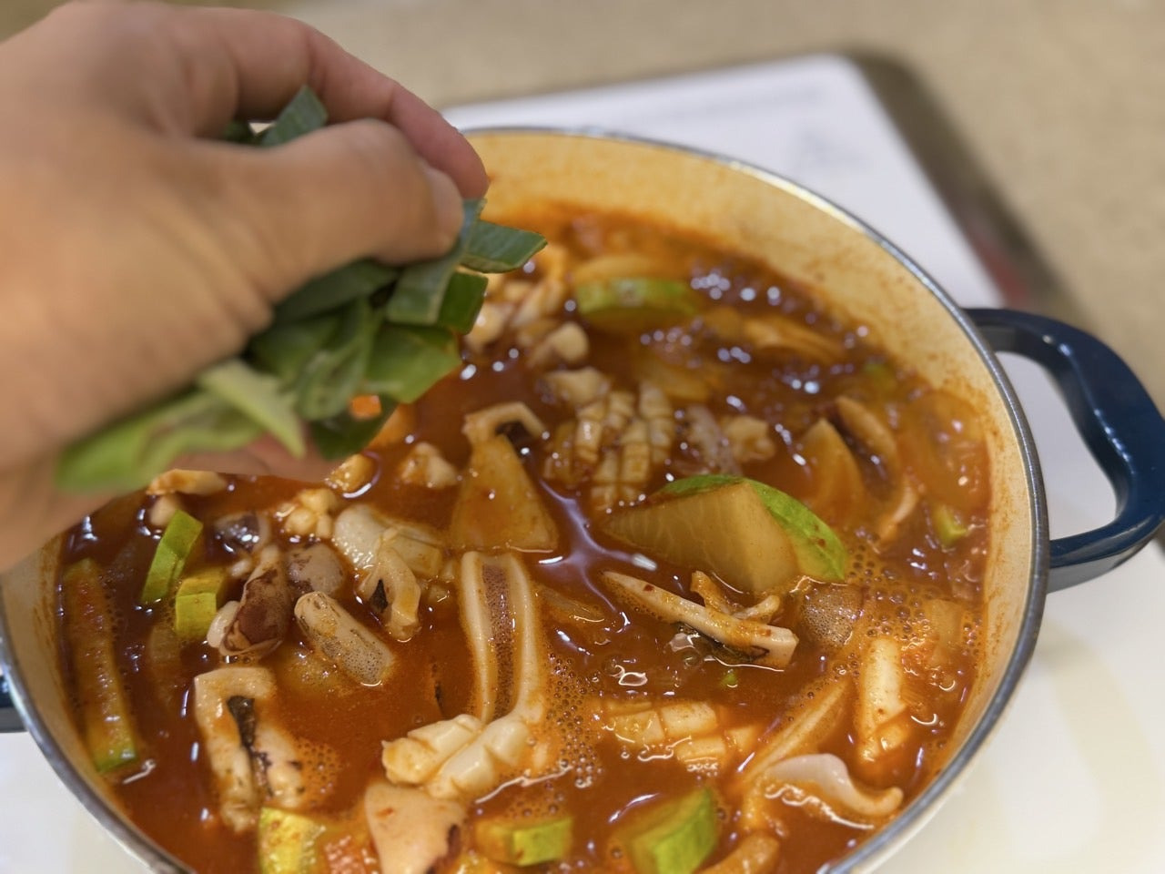 모두 넣고 오징어가 익을 정도로만 끓여주세요.