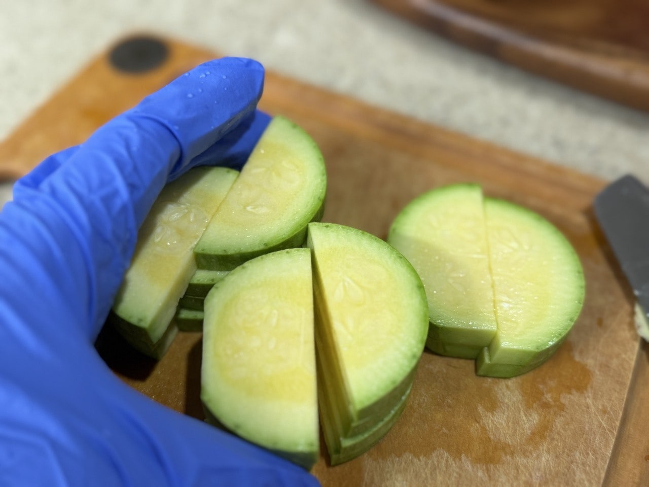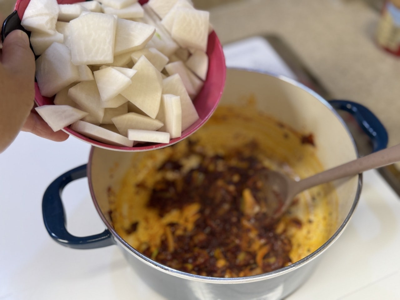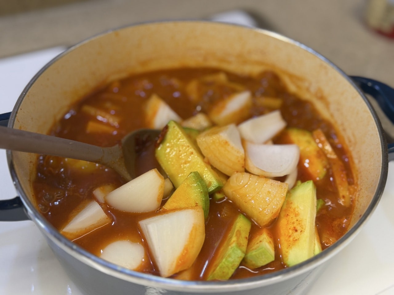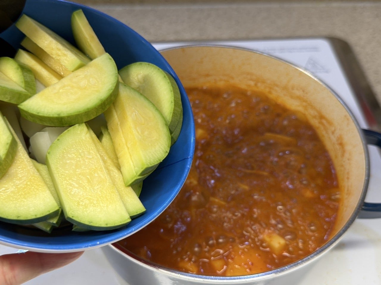 오징어 애호박에 무까지 듬뿍 썰어 넣고