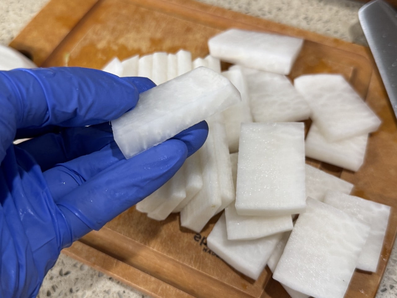 오징어와 궁합이 좋은 무는 300g 나박 썰고