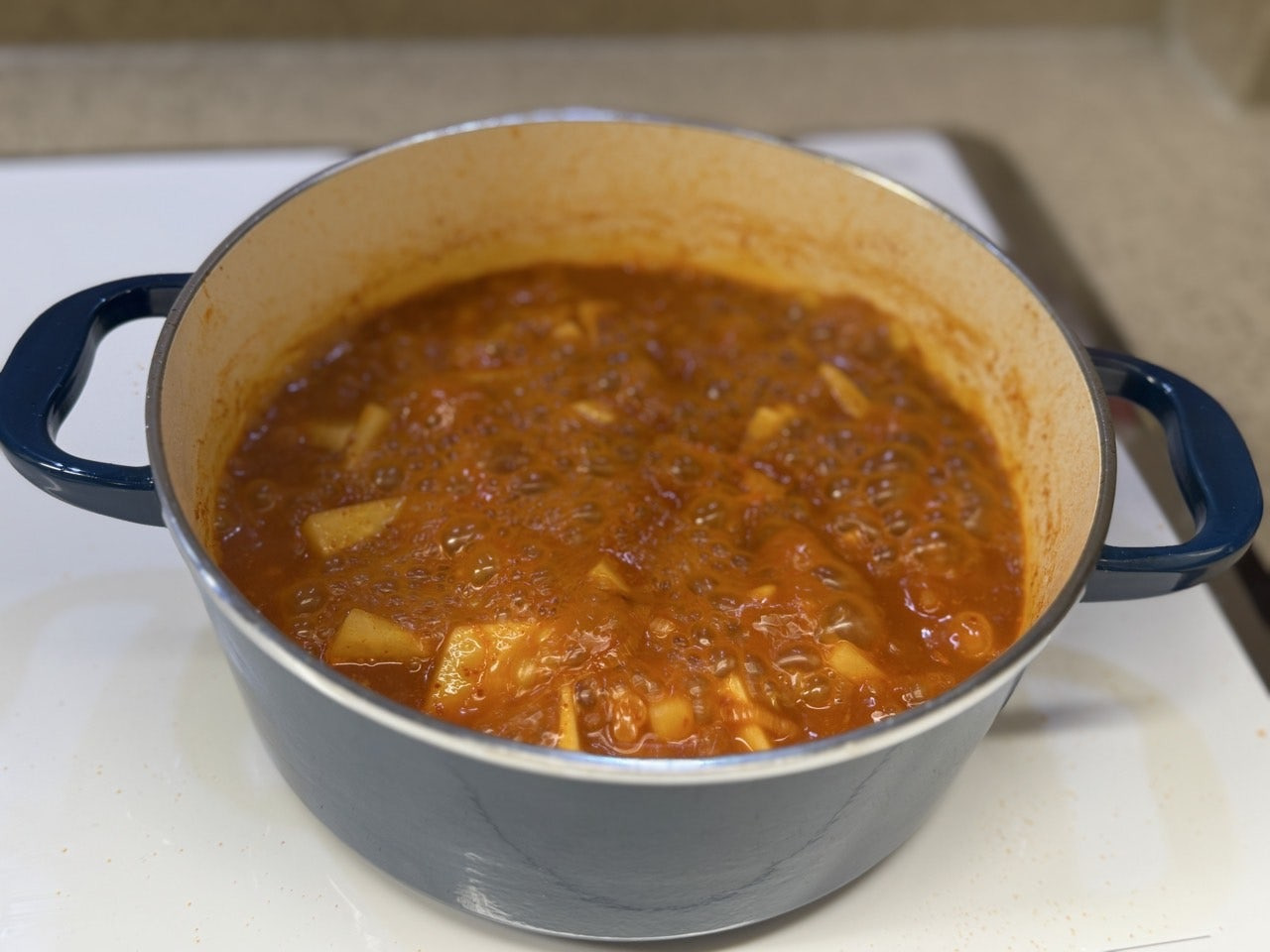 오징어와 애호박이 듬뿍 들어간 고추장찌개죠.