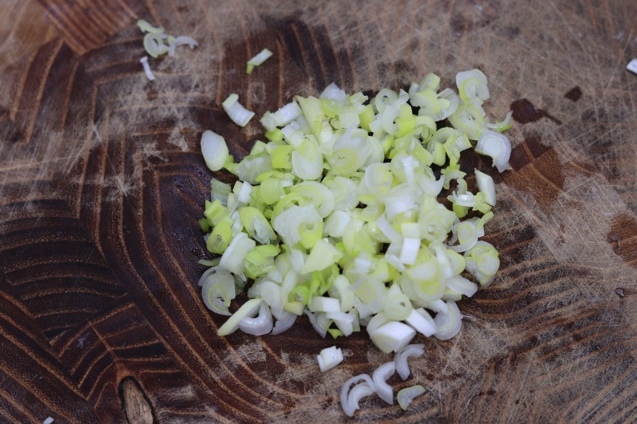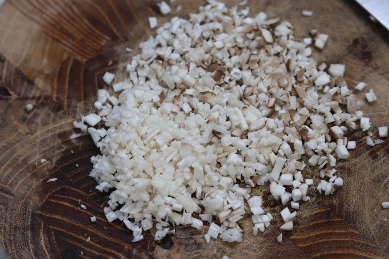 2. 새송이버섯 머리부분(또는 표고버섯), 대파를 잘게 썰어 줍니다.