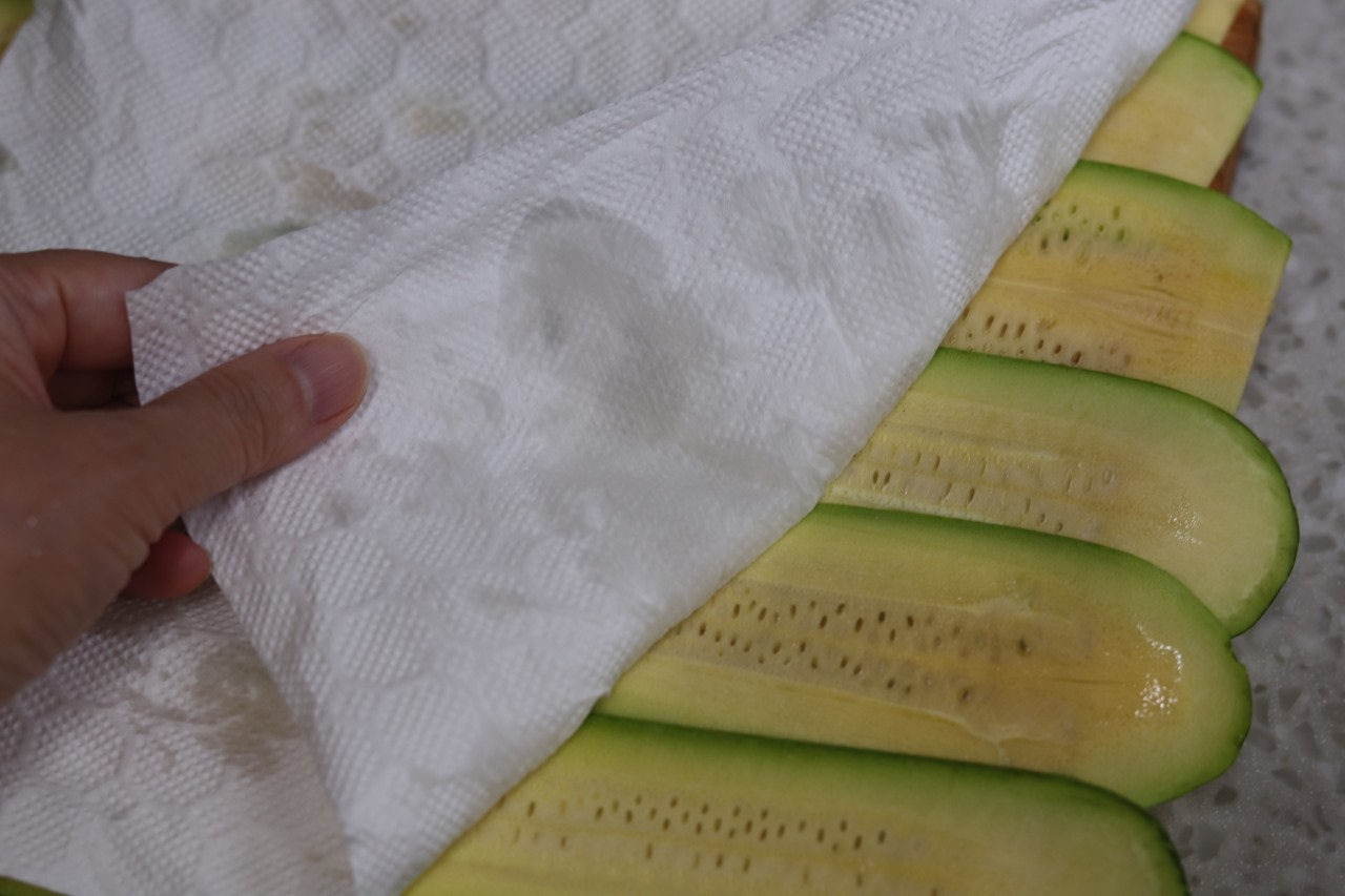 1. 애호박을 얇게 썰어 소금을 뿌려 10분간 둡니다.