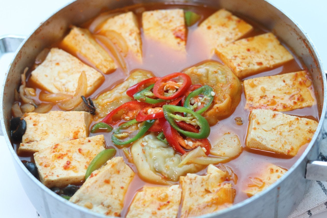 오늘은 추운 날에 얼큰하고 뜨끈하게 드시기 좋은 두부 만두전골 레시피를 준비해 봤어요!
