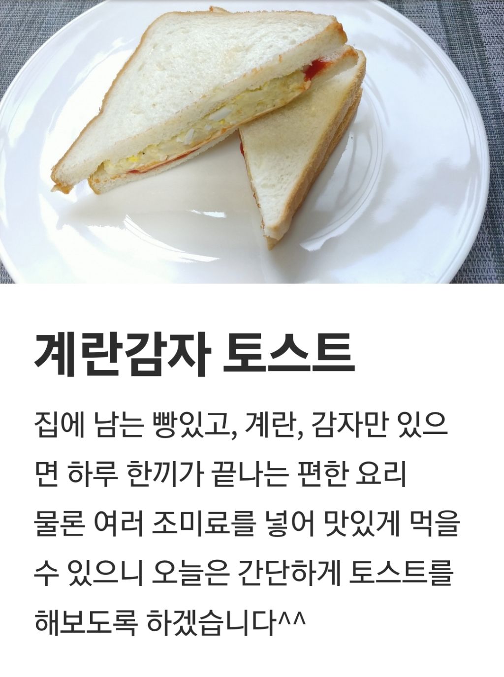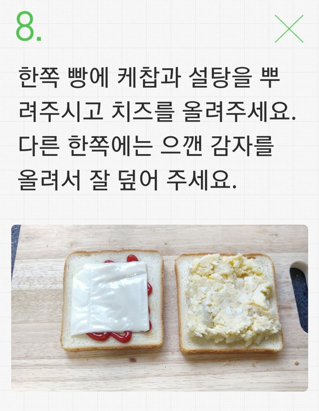 계란 감자 토스트 만들기 작성자미션|작성시간24.04.18|조회수26 목록 댓글 0 글자크기 작게가 글자크기 크게가 진짜 맛있어요제과점 빵 못먹습니다 다음검색 현재 게시글 추가 기능 열기 북마크 공유하기 신고 센터로 신고 댓글 댓글 0 댓글쓰기 답글쓰기 댓글 리스트