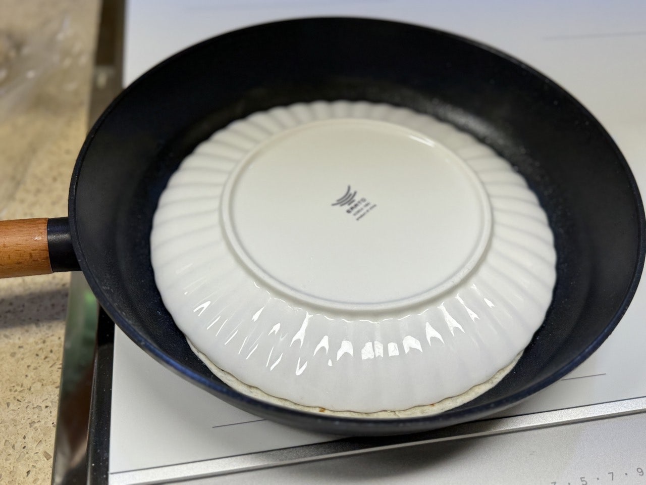 접시로 덮어준 다음 뒤집어서 접시 위로 담아주세요.
