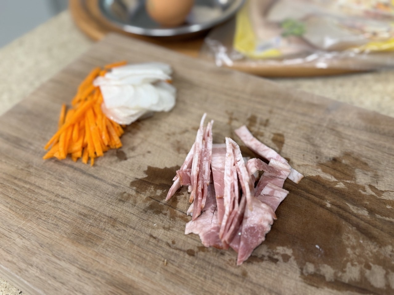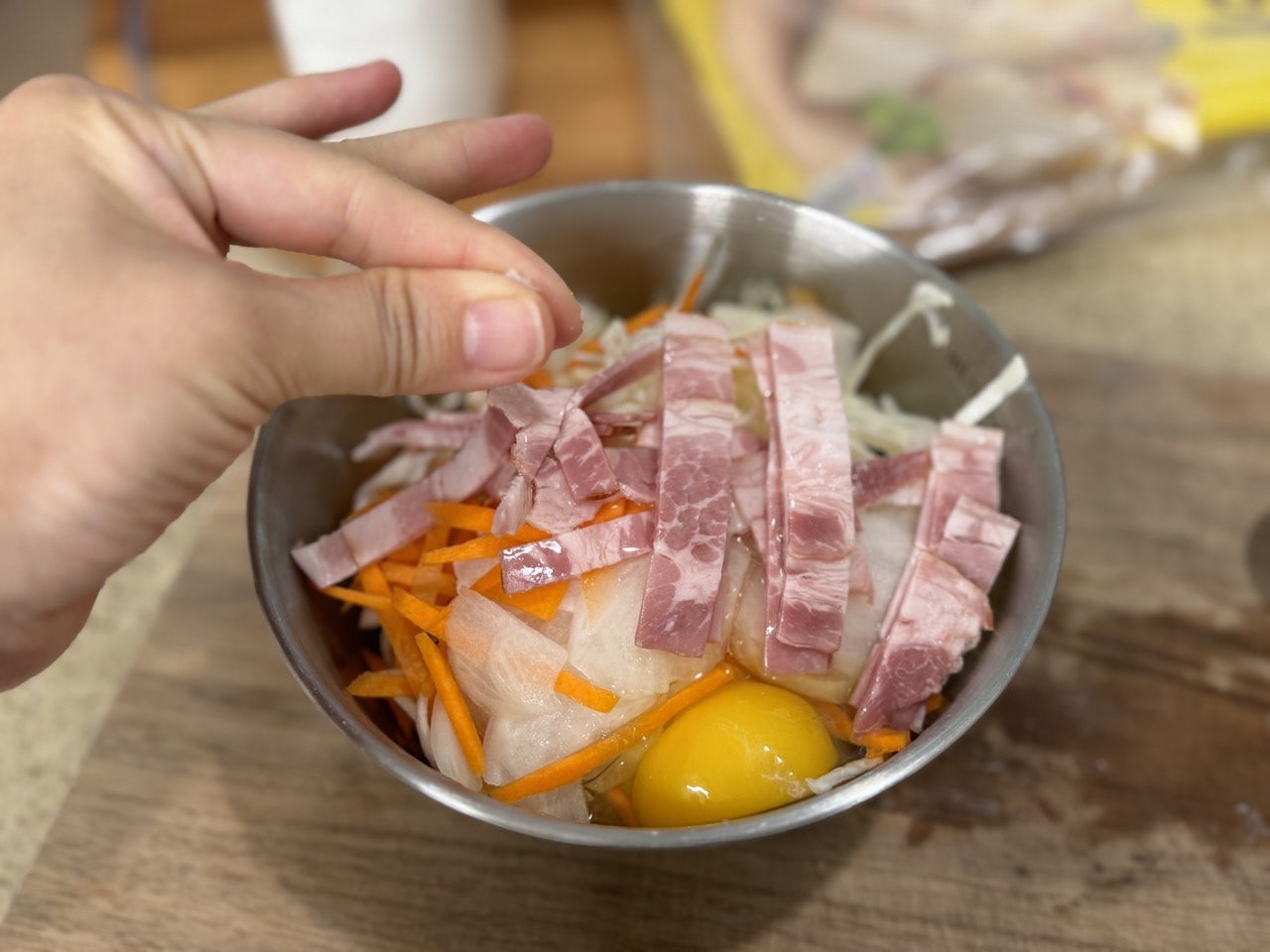 당근 소량, 계란 1~2개, 베이컨 2줄,