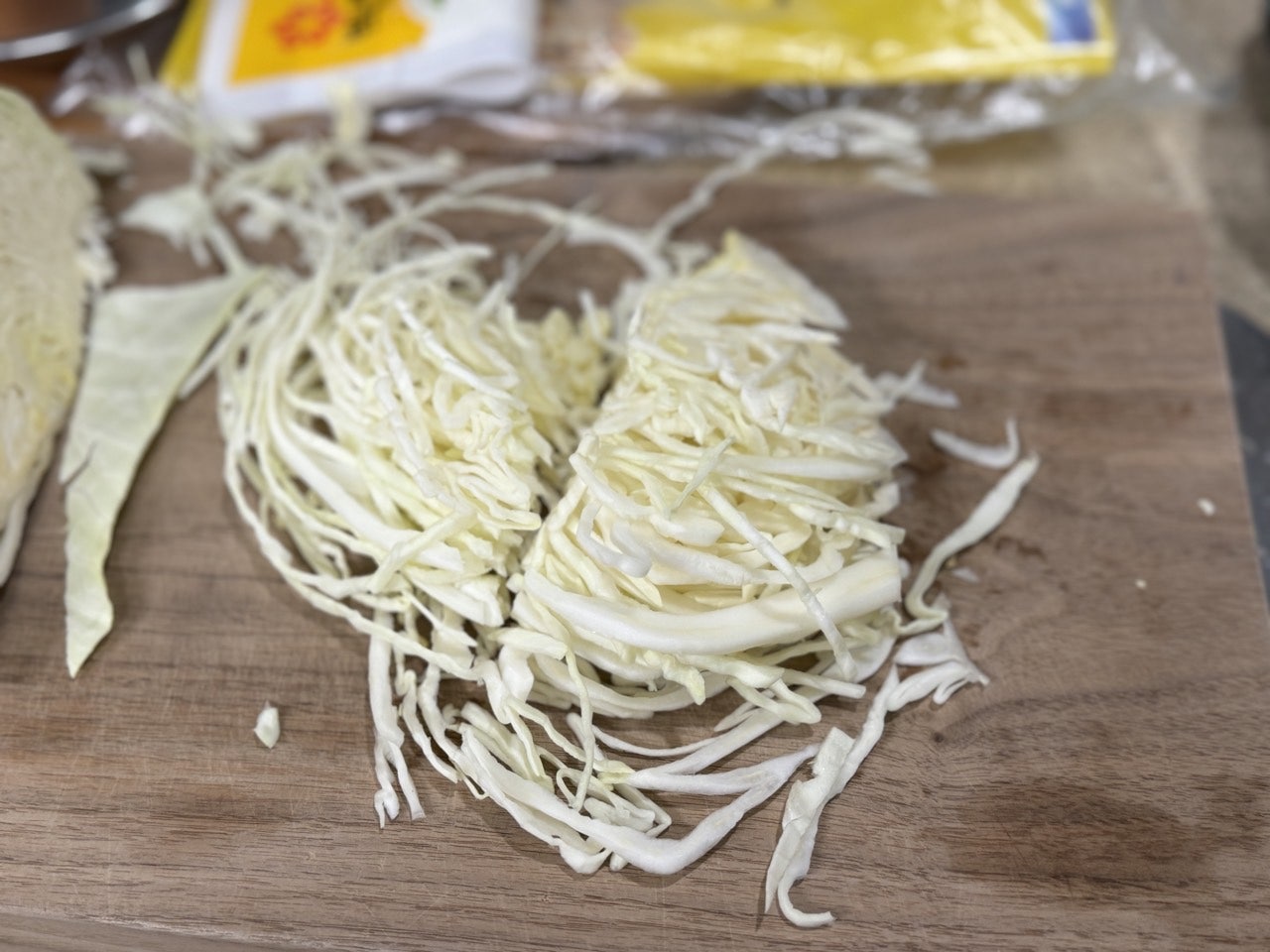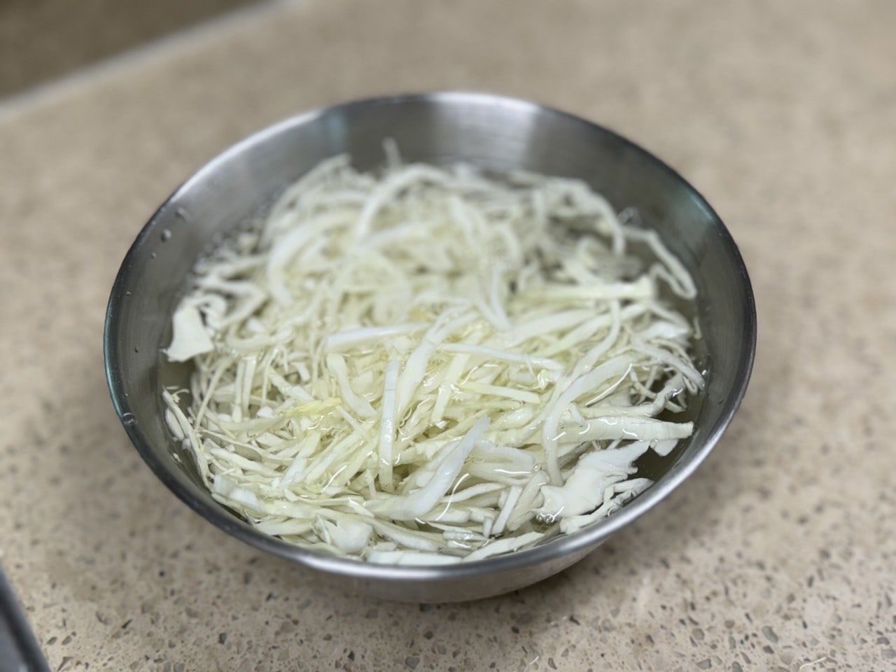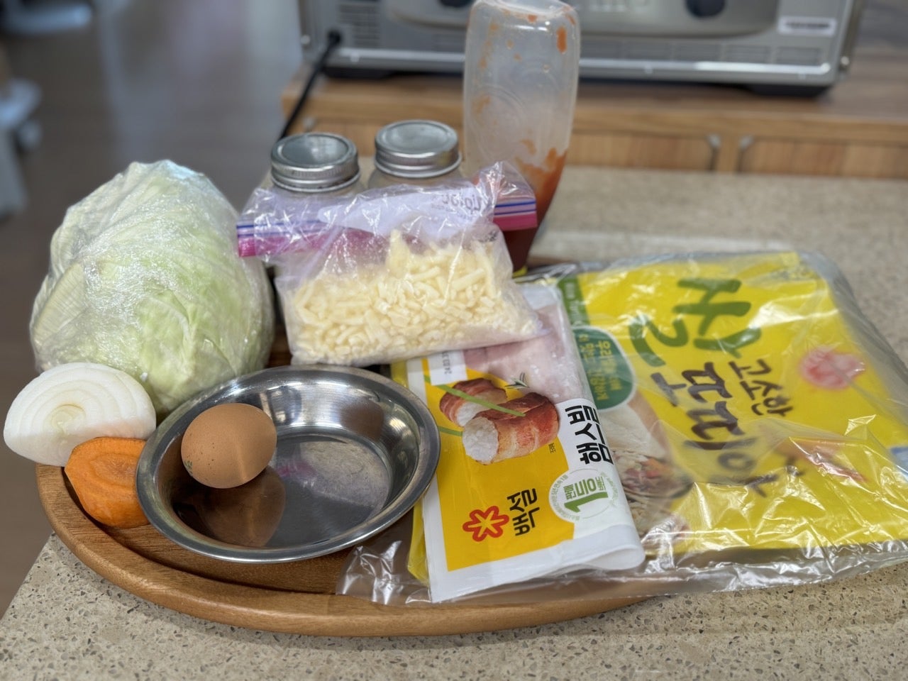 양배추 외 준비된 재료들을 한군데 담아주세요.