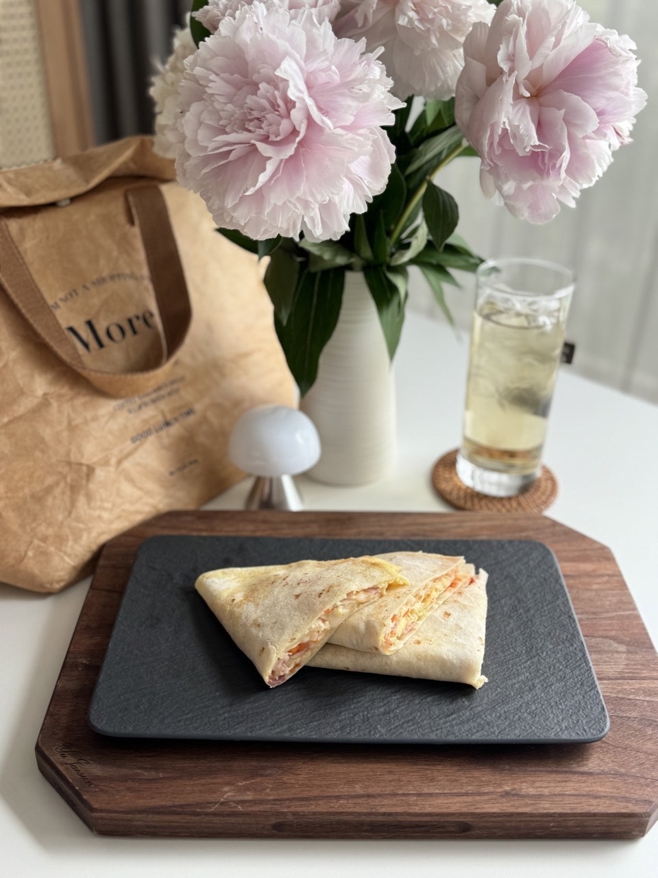 쌀로 만든 또띠아라 속도 편하고 담백한 맛이 맘에 든답니다.
