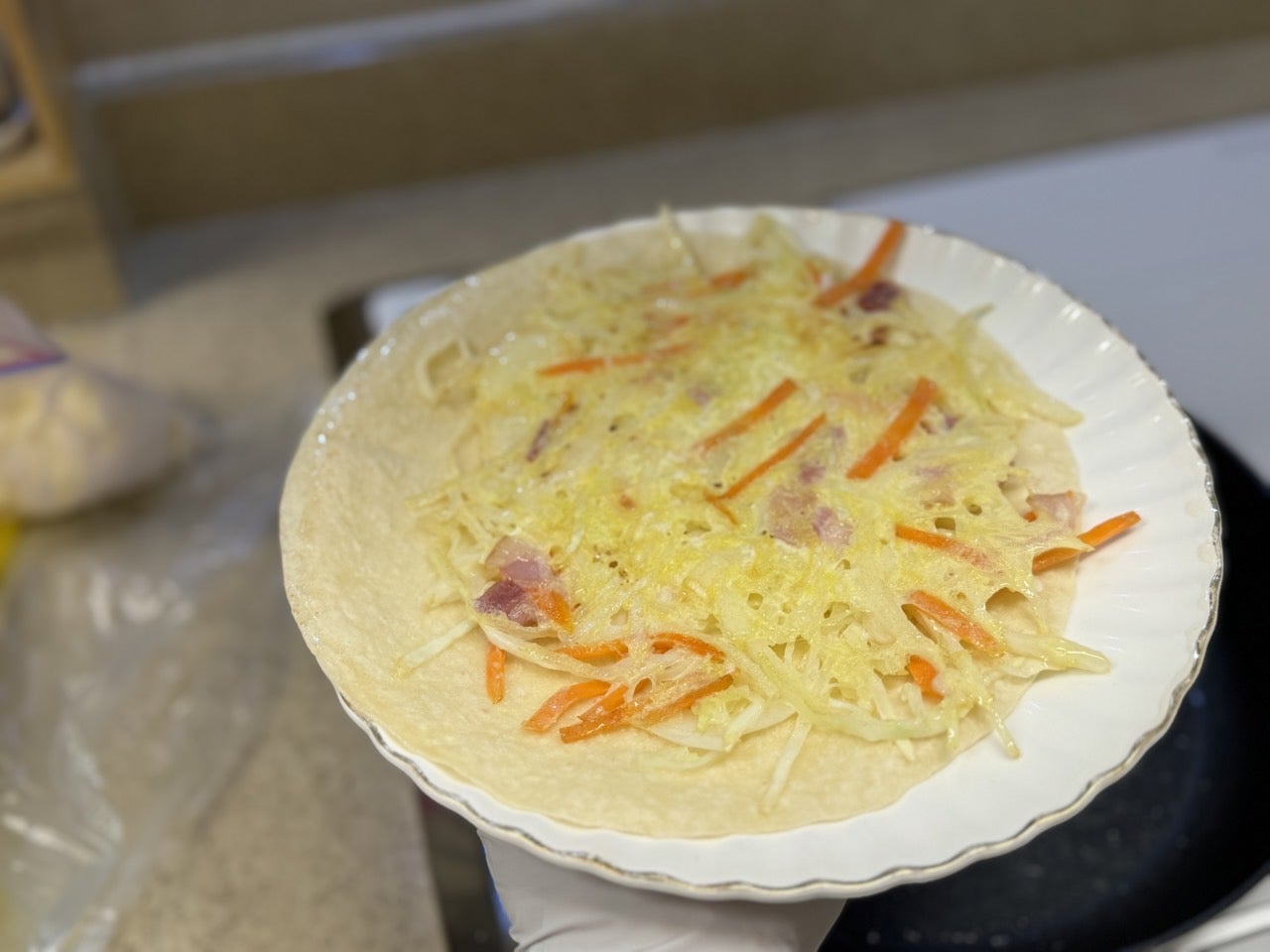 쌀 또띠아 2장, 양배추 100g, 양파 1/4개,