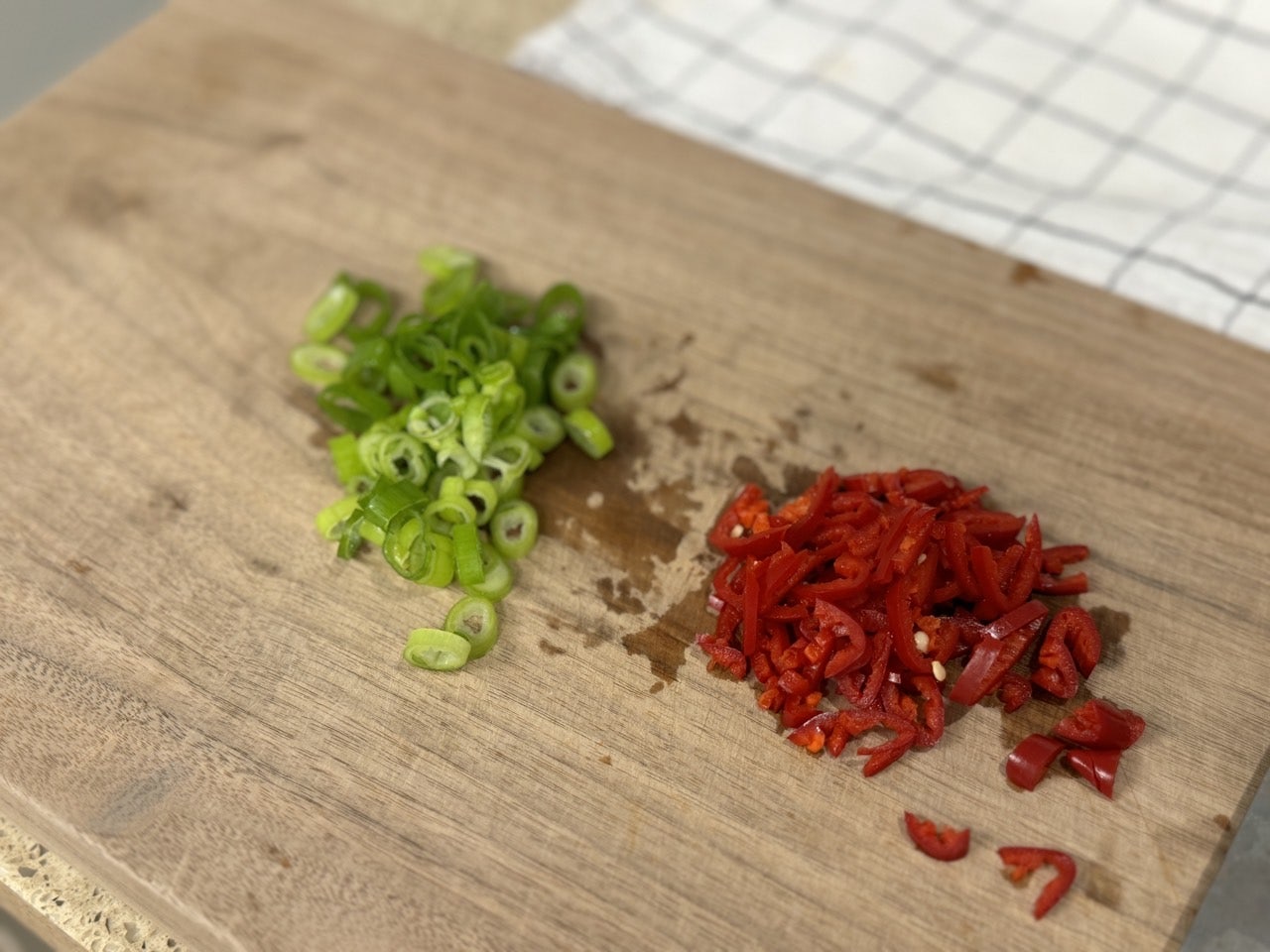 대파 소량과 홍고추를 잘게 다져주세요.