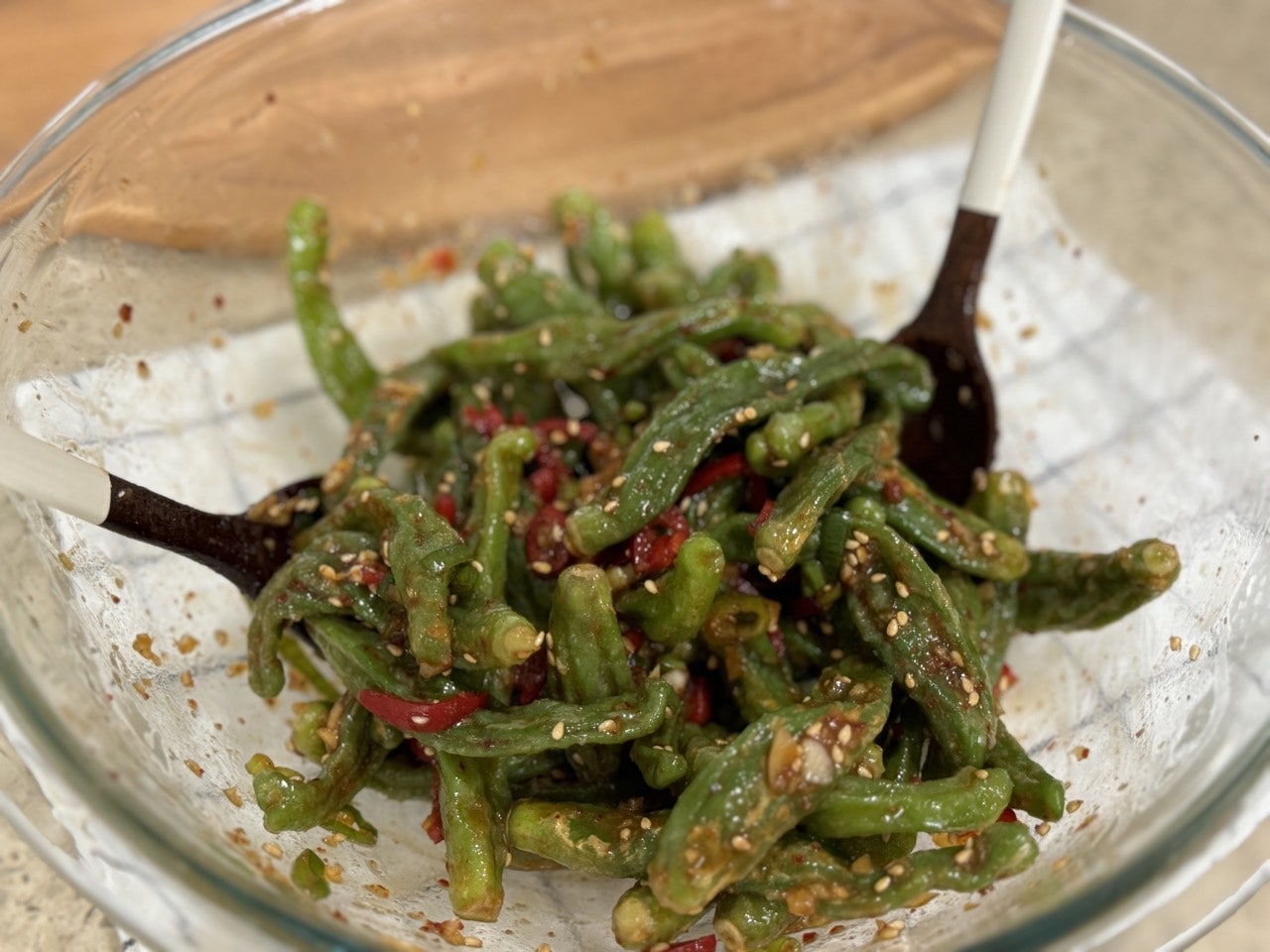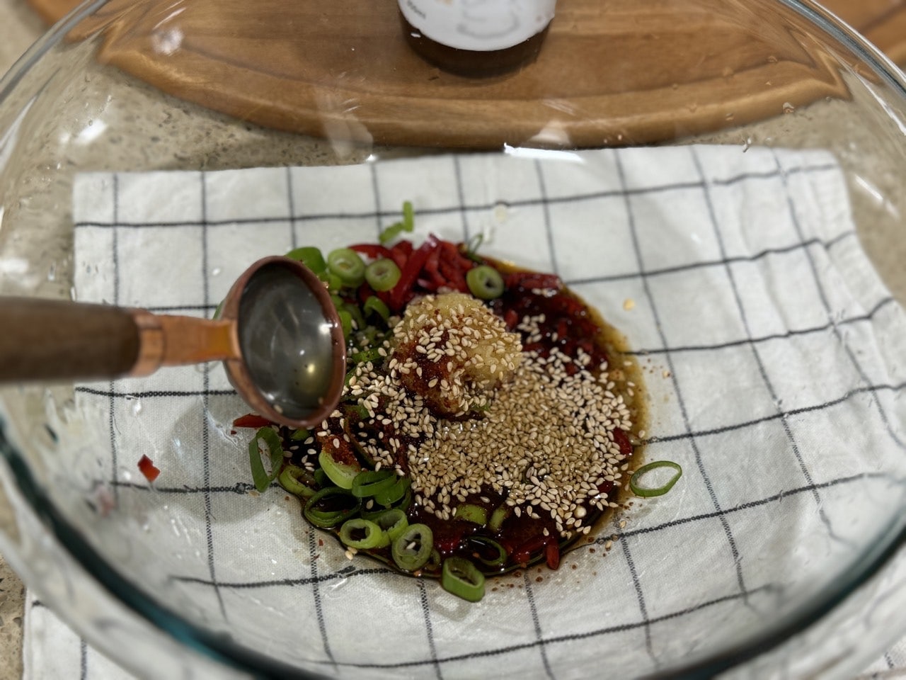 마지막으로 참기름 1T와 통깨를 넣어주세요.