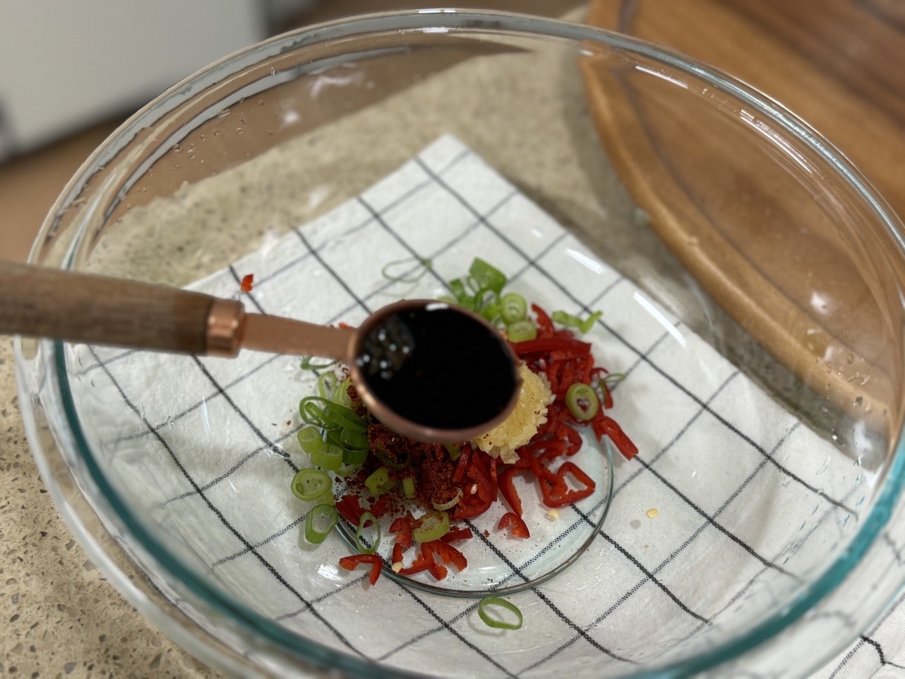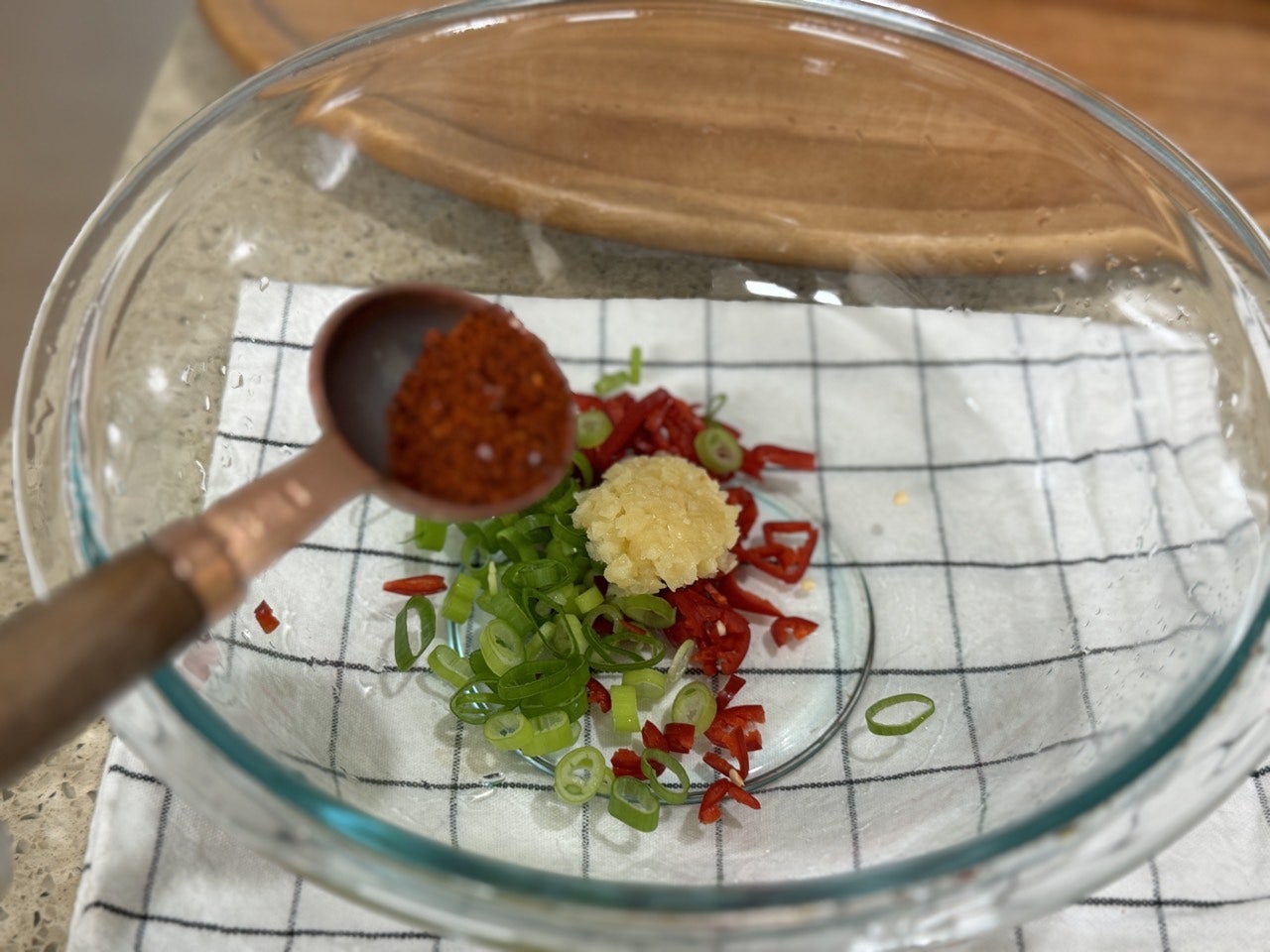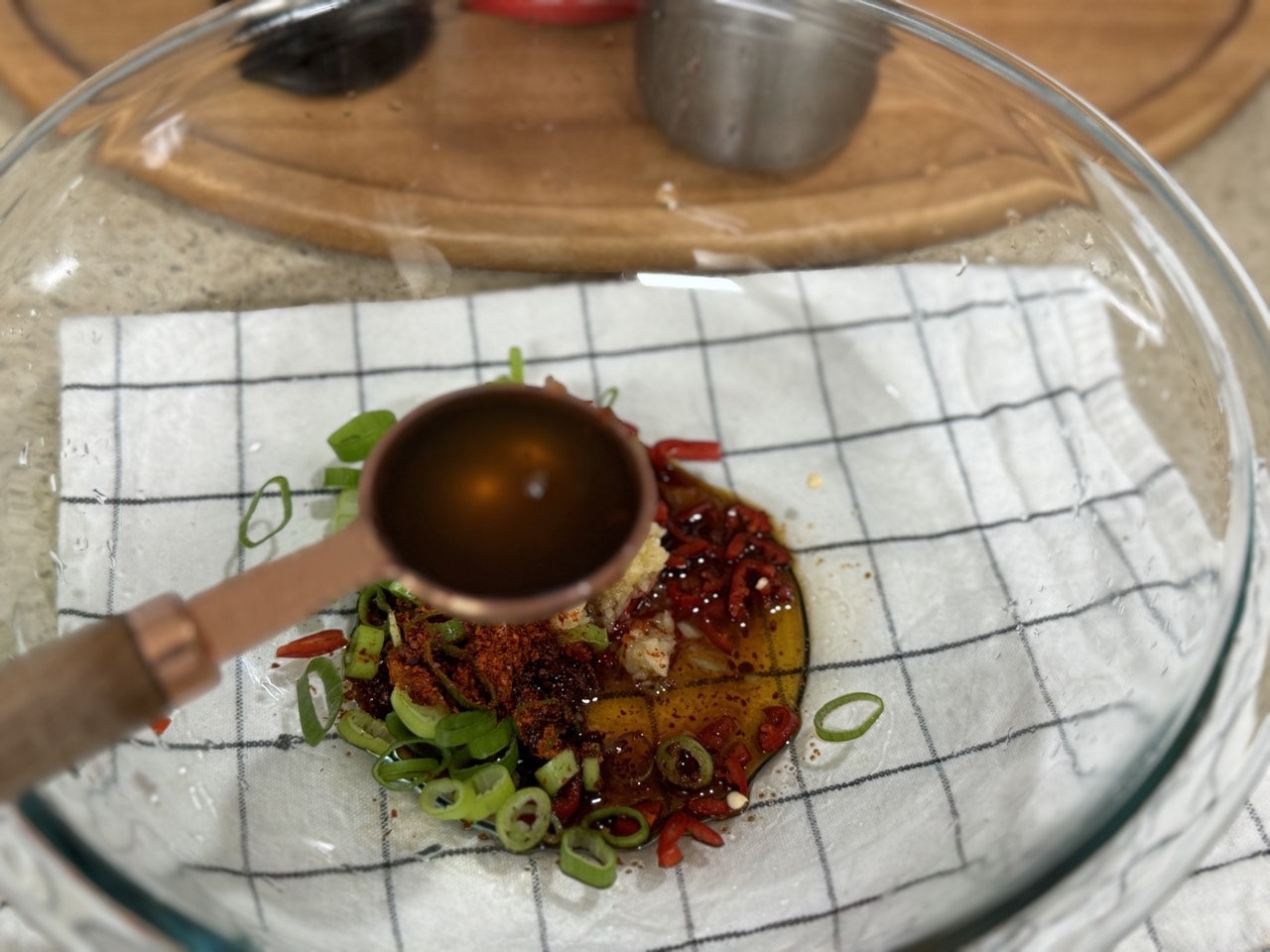 다진 마늘 1t, 고춧가루 0.5T, 진간장 1T,