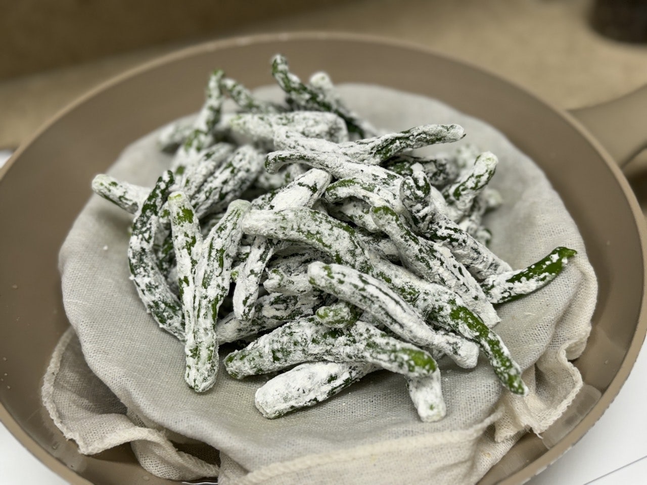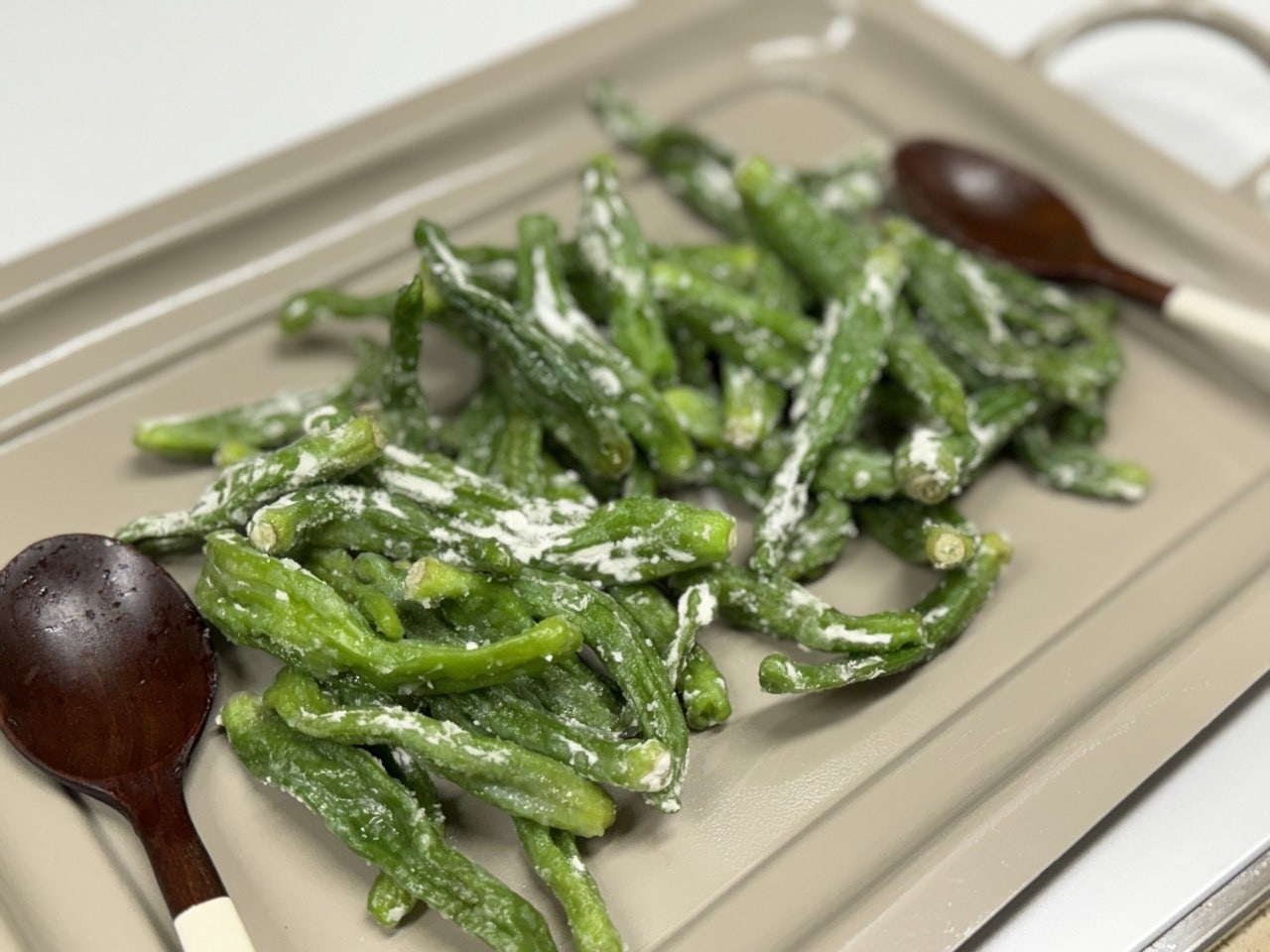 가루 옷을 입은 꽈리고추를 얹어주세요.