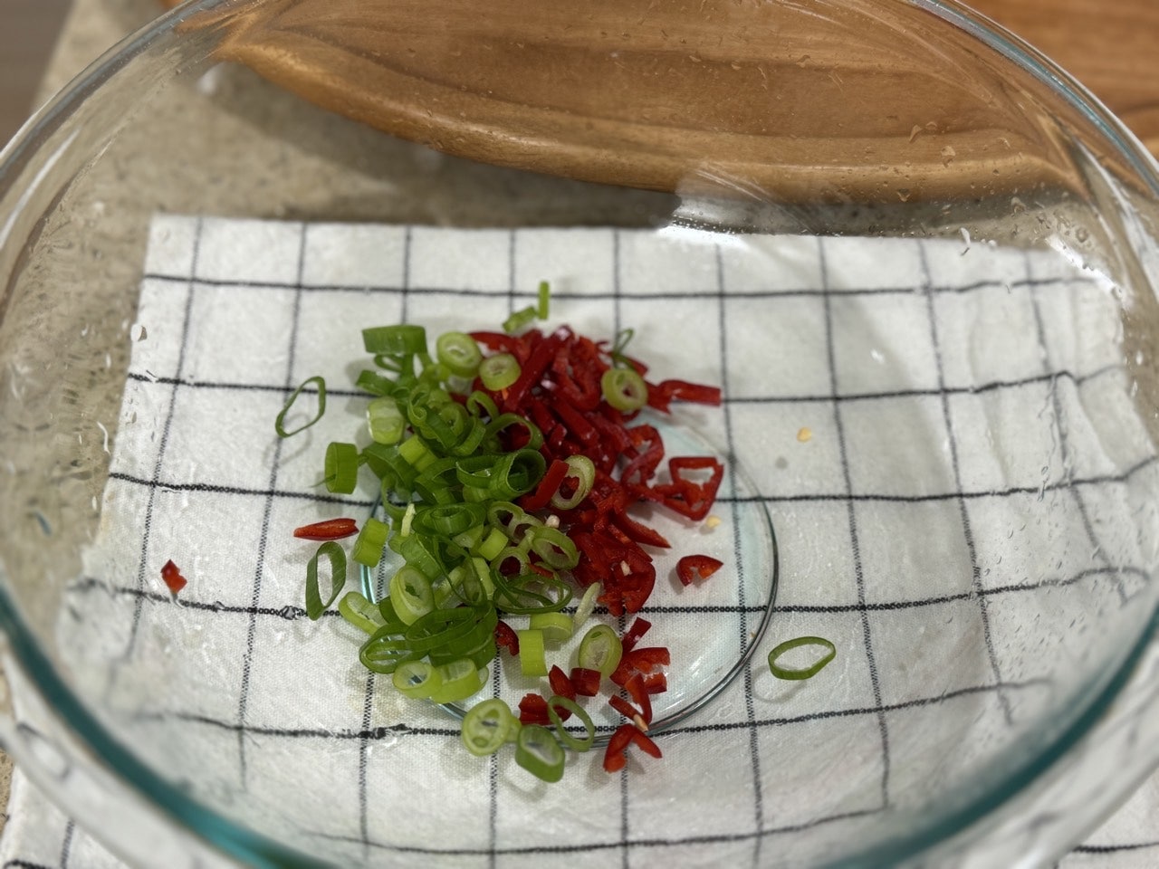 다진 대파와 고추를 넣고