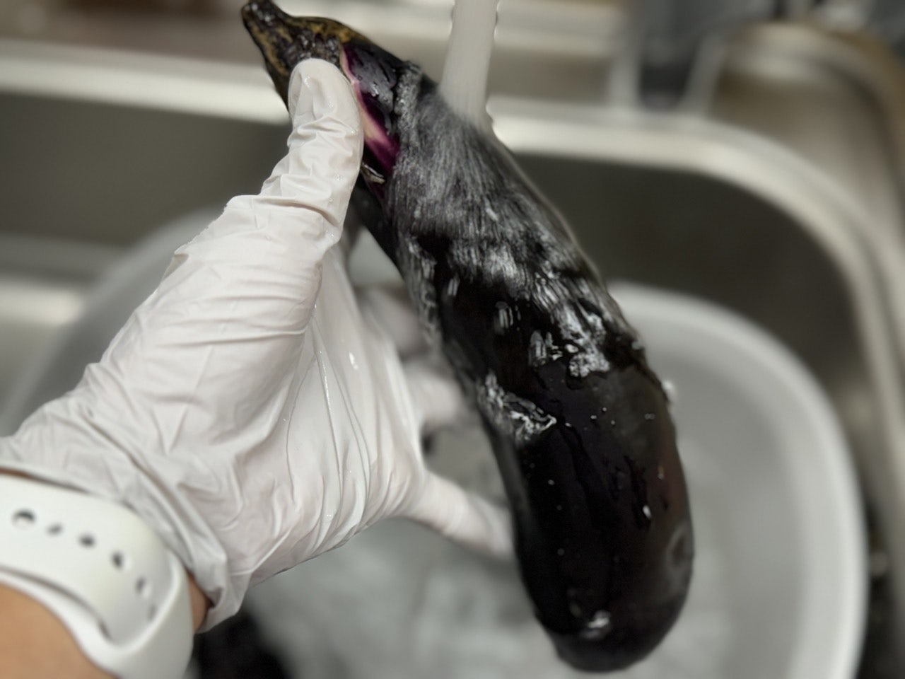 먼저 가지를 흐르는 물로 깨끗하게 세척해요.