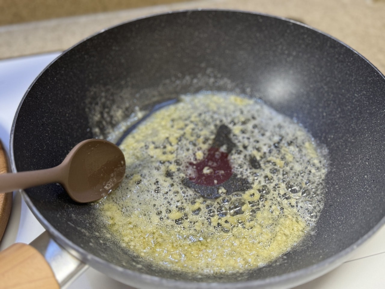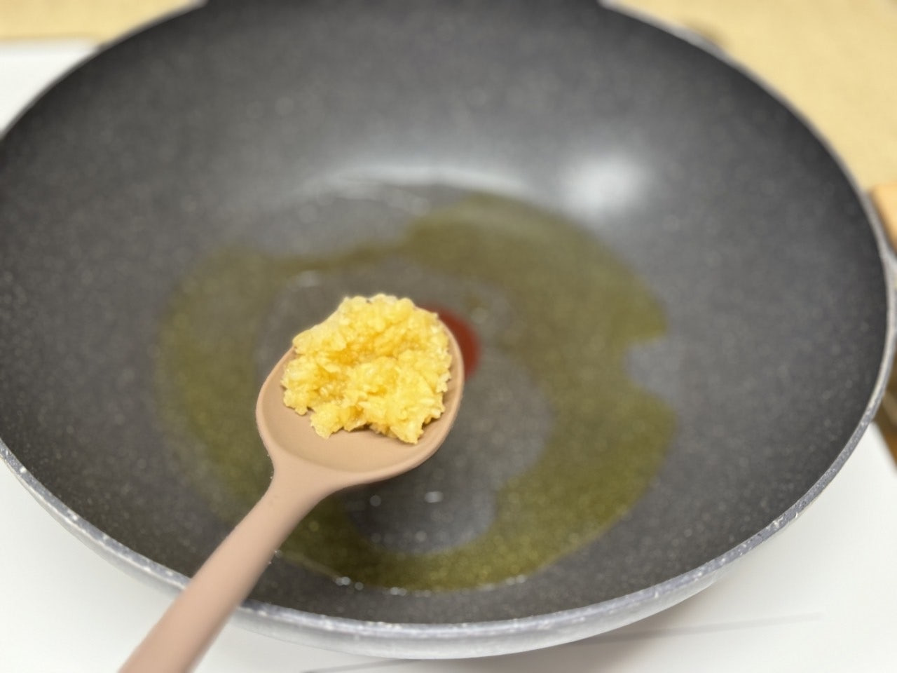 중불에서 살짝 볶아 마늘향을 내주세요.