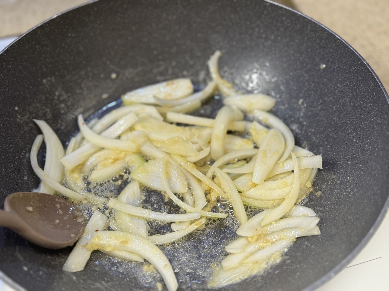 다음으로 양파를 넣고 살짝 볶아줍니다.