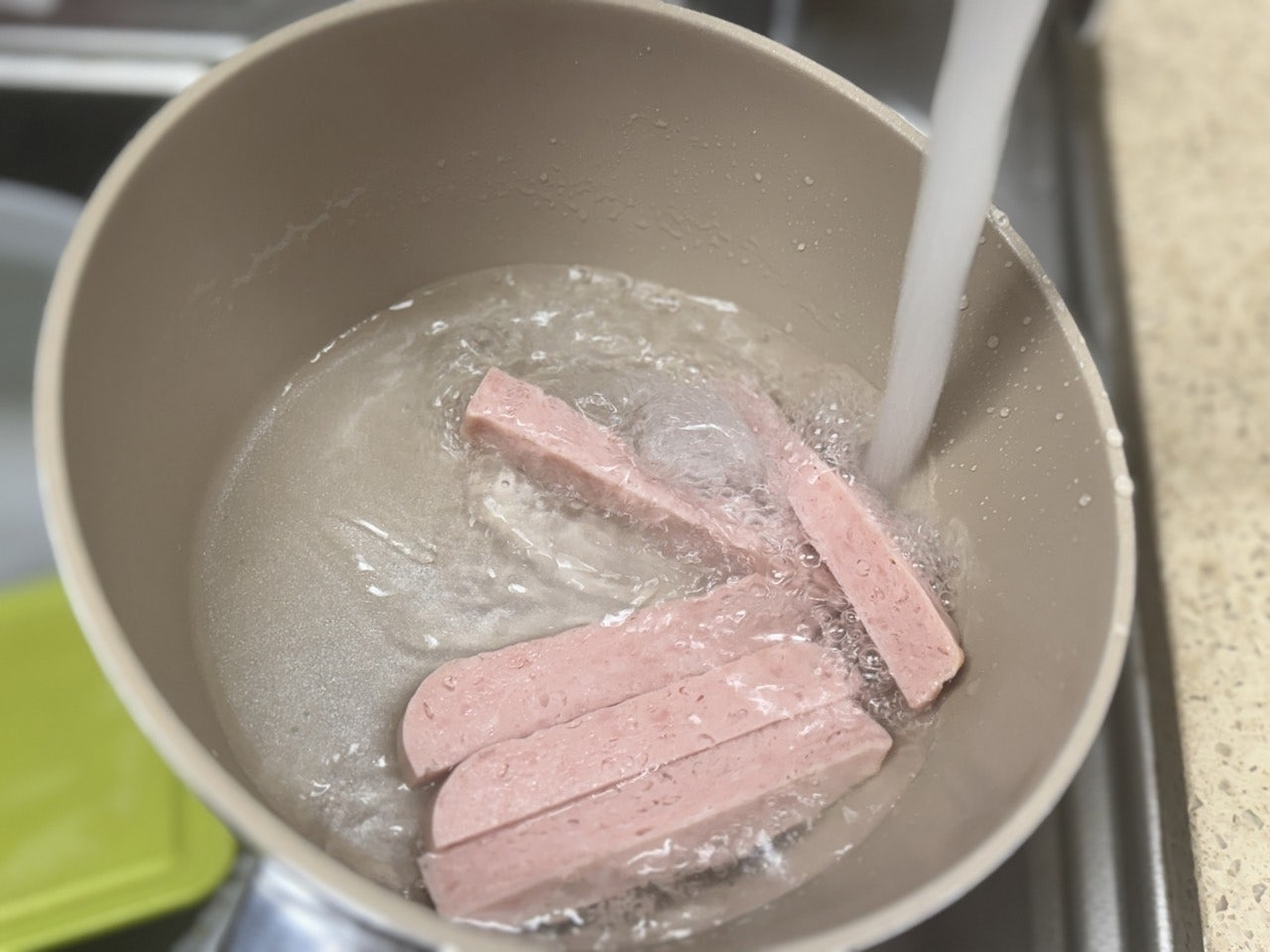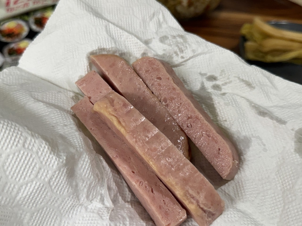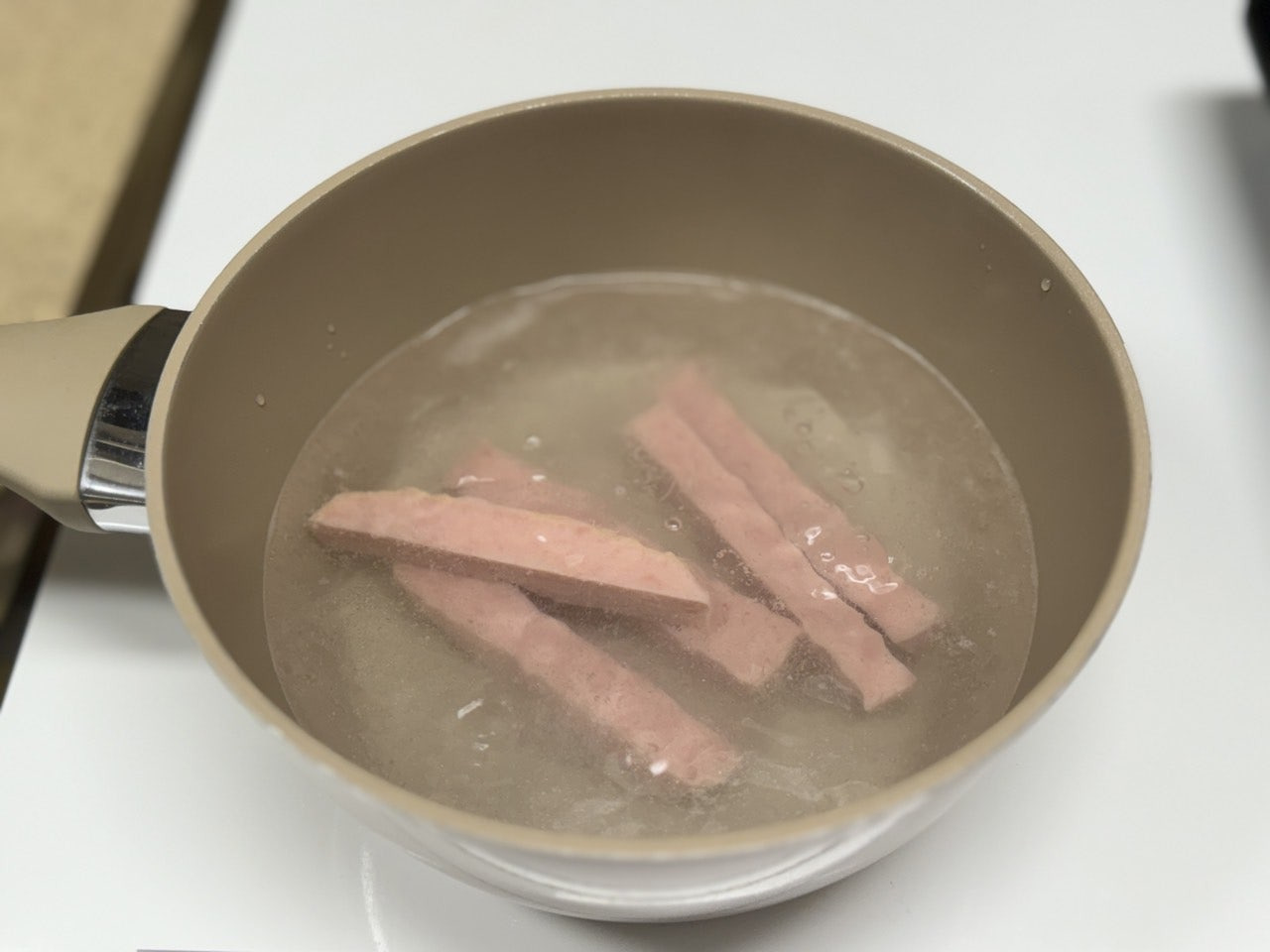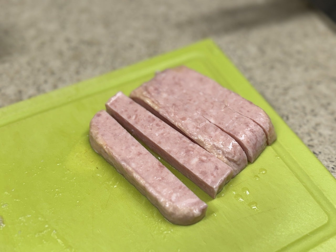 스팸 100g을 손가락 두께 정도로 썰어