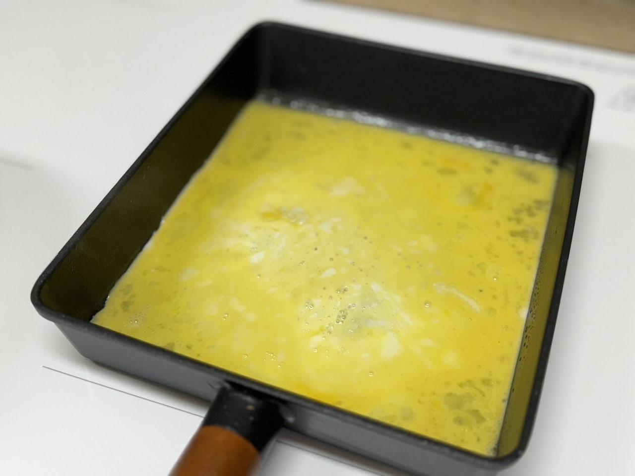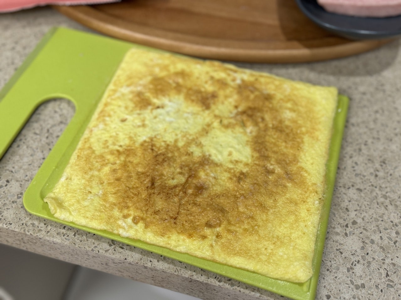 사각 팬에 기름 살짝 발라주고 부어줘요.