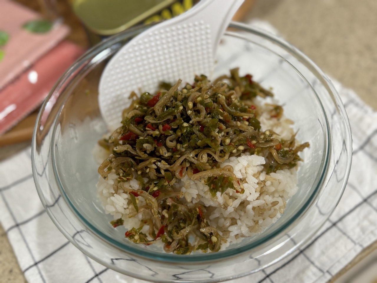 저는 주걱으로 두 번 정도 넣었어요.