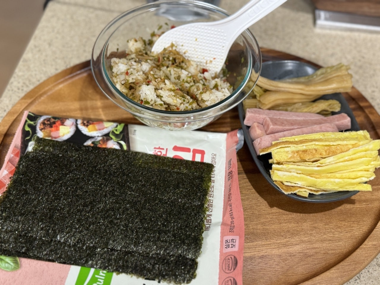 그래서 스팸도 넣고, 계란지단도 넣고