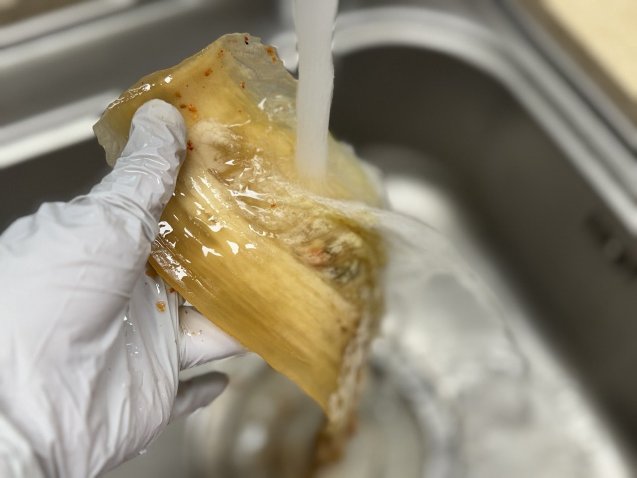 흐르는 물에 씻어 물기를 짜주세요.