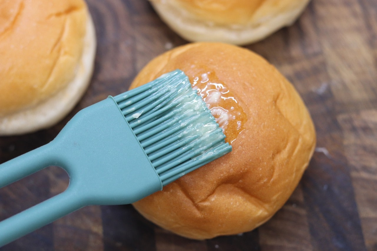3. 빵 윗면엔 버터를 녹여 발라 줍니다.