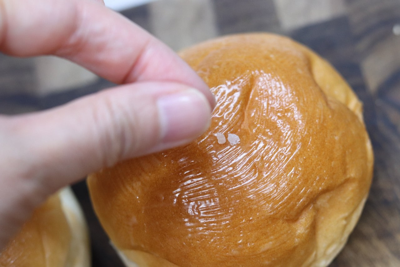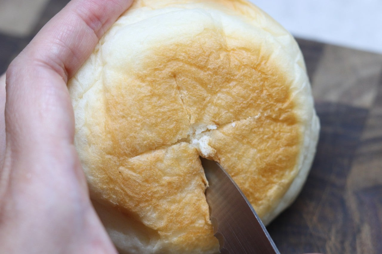 2. 모닝빵 밑면에는 십자로 칼집을 내주세요.